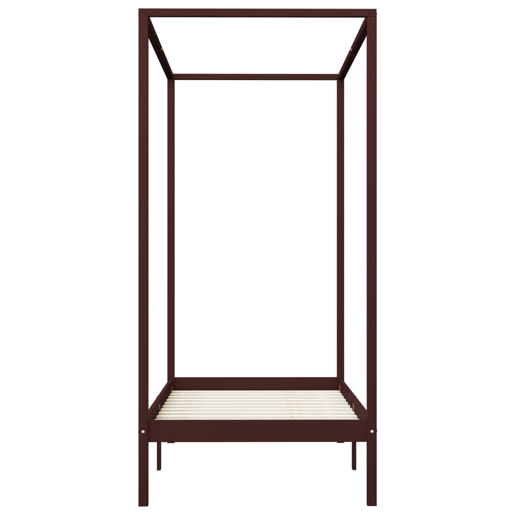 A cama foi concebida de forma inteligente com uma estrutura superior para pendurar as suas cortinas favoritas, o que adiciona um charme único ao seu quarto e ao mesmo tempo privacidade extra. Feita em madeira de pinho maciça, esta estrutura de cama é extremamente resistente e durável. As ripas fortes oferecem o suporte necessário e são altamente confortáveis. Esta estrutura de cama é adequada para um colchão de 90 x 200 cm.