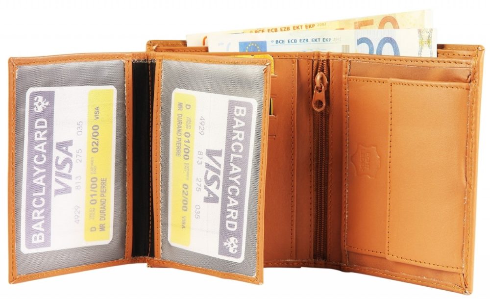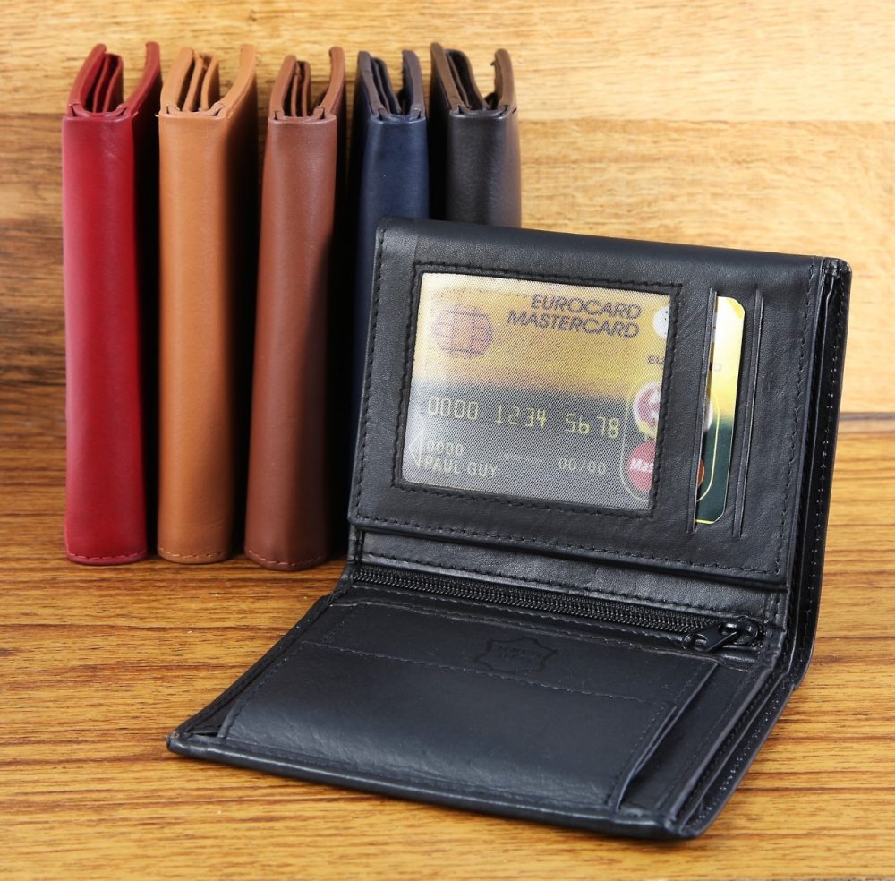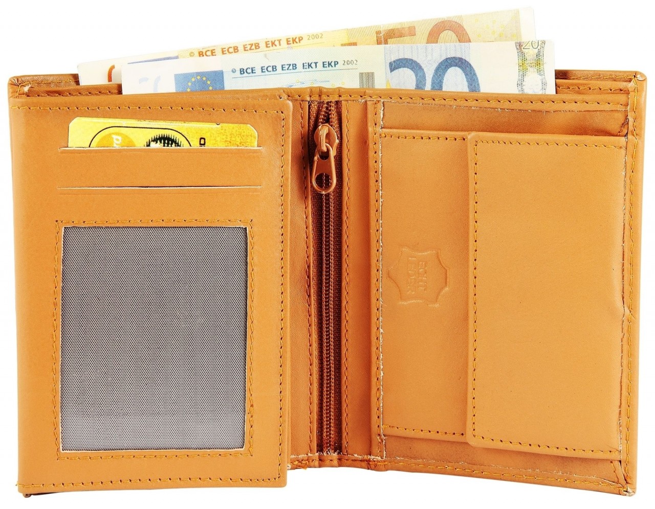 Carteira masculina Excellanc em couro genuíno. A carteira retrato tem 10 cm de largura e 12 cm de altura. A cor é. Possui 2 compartimentos para notas, um compartimento para trocos, 9 compartimentos para cartões de crédito, um compartimento transparente para cartões de crédito e 2 compartimentos transparentes para identificação.