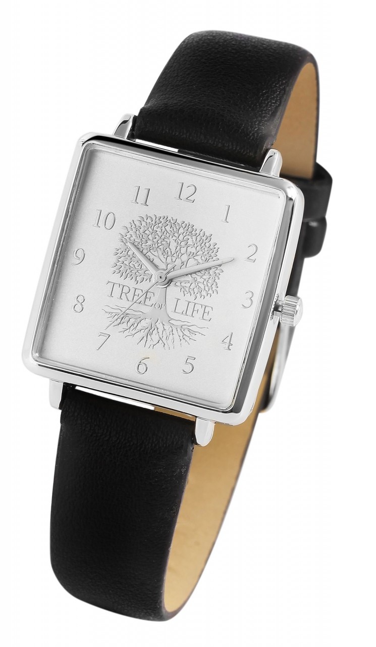 O relógio feminino analógico de 3 ponteiros da marca Excellanc apresenta um movimento de quartzo de alta qualidade. A pulseira de couro sintético tem 16 mm de largura nas hastes. O relógio pode ser aberto e fechado com uma fivela de pino. O comprimento total do relógio é de 23 cm. A caixa retangular de metal com vidro mineral tem um comprimento de 30 mm, uma largura de 29 mm e uma altura de 8 mm. O fundo da caixa é feito de aço inoxidável. Um destaque visual é o mostrador, decorado com o símbolo da Árvore da Vida no centro. Esta é a mesma cor da caixa do relógio e faz com que o relógio seja um chamariz especial. Os ponteiros e índices também combinam com a cor da caixa e completam o visual geral deste elegante relógio feminino. Este companheiro certamente não passará despercebido e rapidamente se tornará uma parte indispensável do seu pulso.