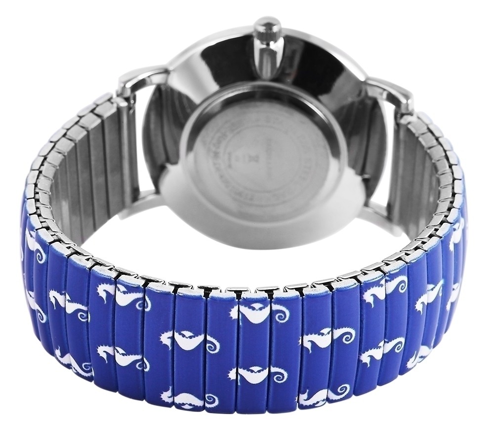 O relógio de pulso analógico de 3 ponteiros para senhora da marca Excellanc possui um movimento de quartzo de alta qualidade. A bracelete metálica de puxar tem 18 mm de largura no lug e pode ser facilmente puxada sobre o pulso graças à bracelete elástica. O comprimento total do relógio é de 18,5 cm. A caixa metálica prateada com vidro mineral tem um diâmetro de 36 mm e uma altura de 8 mm. O fundo da caixa é feito de aço inoxidável. O mostrador, decorado com um símbolo marítimo, é um destaque visual. Os ponteiros e os índices são prateados e combinam bem com o aspeto geral do relógio. O mostrador está dividido por oito índices de linha. Os números grandes são apresentados às doze, três, seis e nove horas. O relógio desperta o desejo de sol, praia e mar e é um ótimo companheiro de verão.