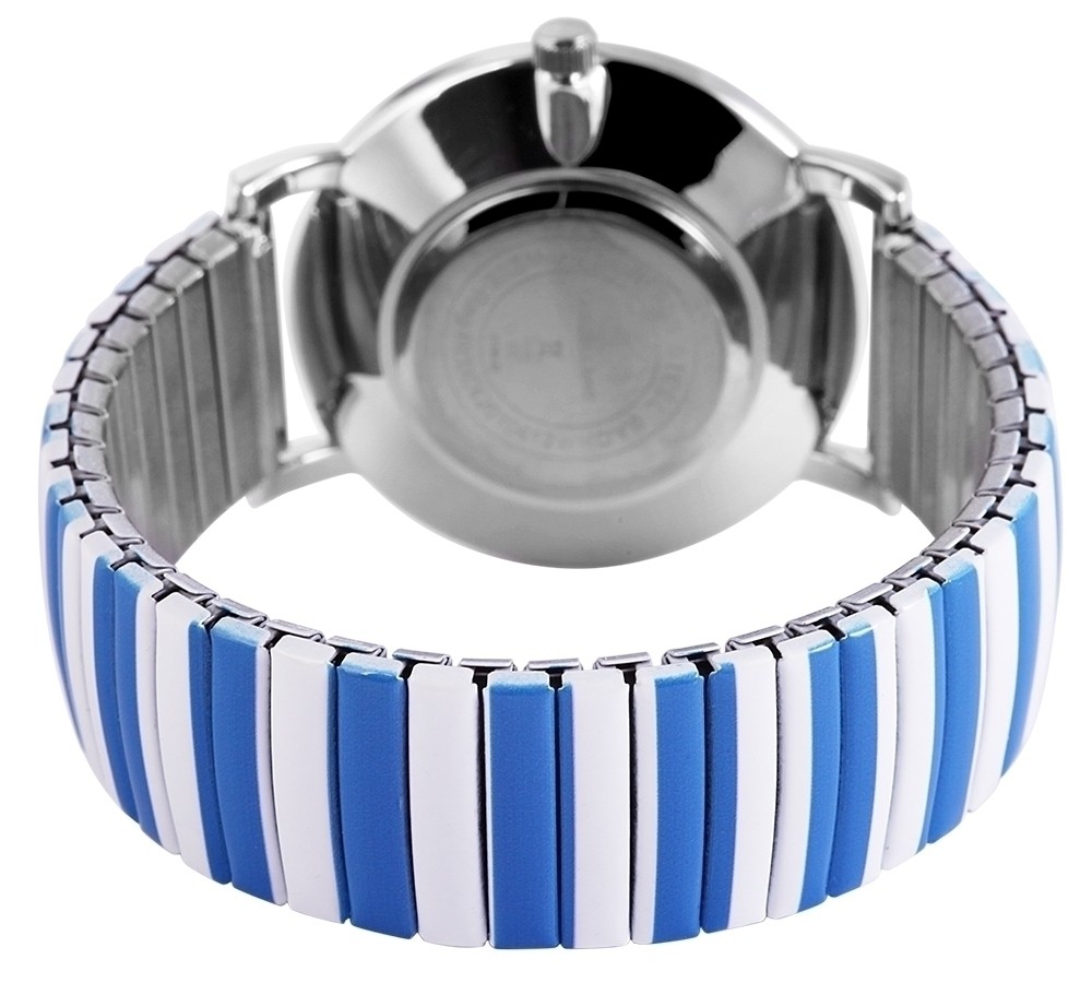 O relógio de pulso analógico de 3 ponteiros para senhora da marca Excellanc possui um movimento de quartzo de alta qualidade. A bracelete metálica de puxar tem 18 mm de largura no lug e pode ser facilmente puxada sobre o pulso graças à bracelete elástica. O comprimento total do relógio é de 18,5 cm. A caixa metálica prateada com vidro mineral tem um diâmetro de 36 mm e uma altura de 8 mm. O fundo da caixa é feito de aço inoxidável. O mostrador, decorado com um símbolo marítimo, é um destaque visual. Os ponteiros e os índices são prateados e combinam bem com o aspeto geral do relógio. O mostrador está dividido por oito índices de linha. Os números grandes são apresentados às doze, três, seis e nove horas. O relógio desperta o desejo de sol, praia e mar e é um ótimo companheiro de verão.