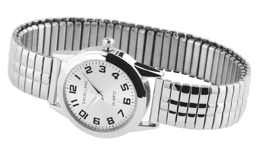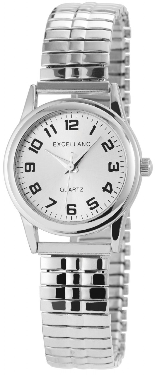 O relógio de pulso analógico de 3 ponteiros para senhora da Excellanc possui um movimento de quartzo de alta qualidade. A pulseira flexível é feita de aço inoxidável, pode ser puxada confortavelmente e facilmente sobre o pulso e tem 14 mm de largura na alça. O comprimento total do relógio é de 20 cm. A caixa de metal com vidro mineral tem um diâmetro de 26 mm e uma altura de 7 mm. A parte traseira da caixa era feita de aço inoxidável. O mostrador claro com algarismos arábicos garante uma exibição clara para que você possa ver a hora rapidamente. Resumindo, este relógio é um companheiro confiável que pode ser usado em todas as ocasiões.