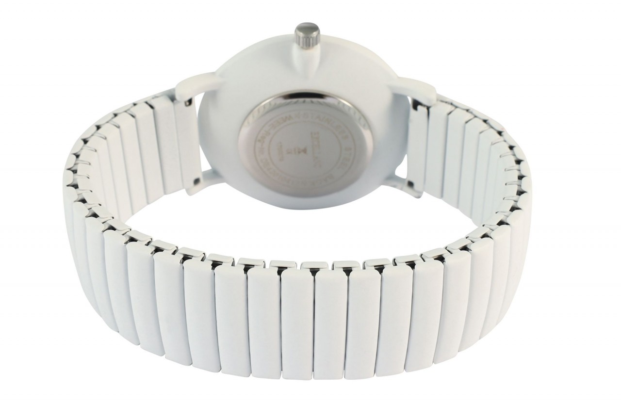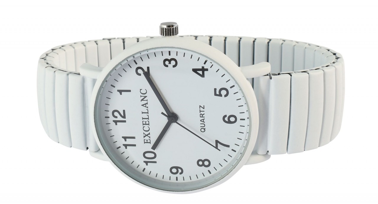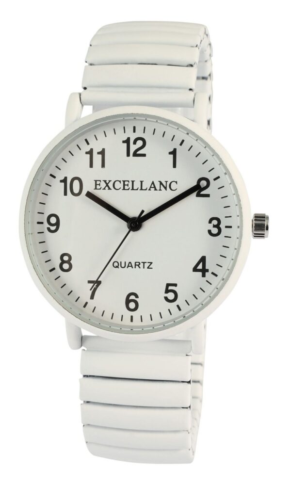 Este relógio feminino Excellanc com pulseira está disponível em uma variedade de cores. Você pode escolher entre um acabamento fosco simples ou um visual metálico moderno. A pulseira elástica pode ser encurtada removendo elementos, permitindo ajuste individual e máximo conforto. Feito de metal de alta qualidade, este relógio combina durabilidade e estilo de uma forma impressionante. Dentro do relógio há um movimento de quartzo japonês de alta qualidade do tipo PC21, que garante uma cronometragem precisa. A parte traseira da caixa em aço inoxidável e o vidro mineral oferecem proteção e durabilidade adicionais. O mostrador branco com ponteiros pretos e algarismos arábicos garante uma legibilidade clara e fácil. Com um comprimento total de 19 cm quando relaxado, a pulseira se ajusta confortavelmente a qualquer pulso.