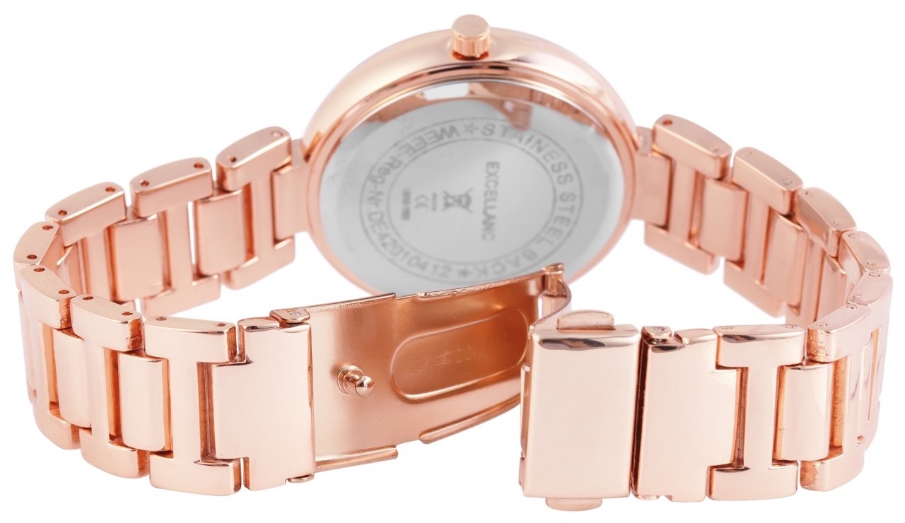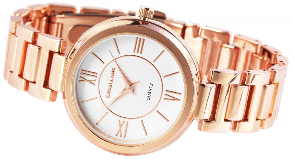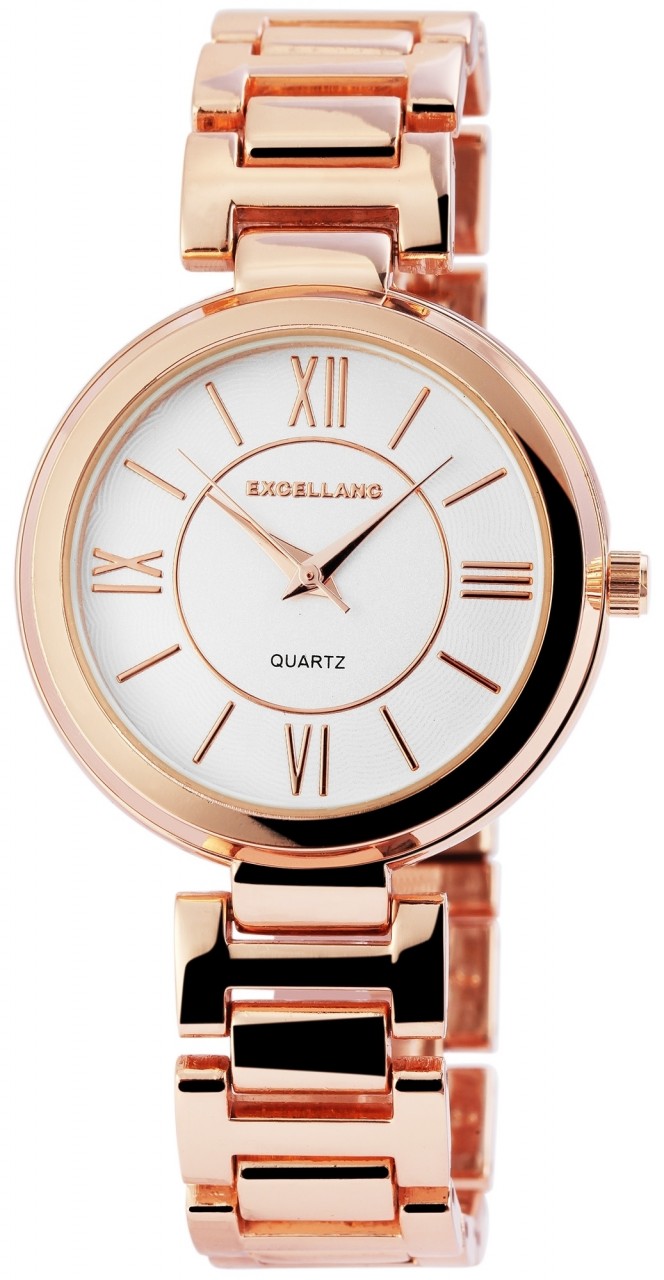 O relógio de pulso analógico de 3 ponteiros para mulher da Excellanc possui um movimento de quartzo de alta qualidade. O comprimento total do relógio é de 21,5 cm. A pulseira de metal em liga de zinco tem 16 mm de largura na alça e pode ser aberta e fechada com um prático fecho dobrável. A caixa metálica de liga de zinco com vidro mineral tem um diâmetro de 35 mm e uma altura de caixa de 8 mm. O mostrador brilhante apresenta grandes algarismos romanos às doze, três, seis e nove horas. Isso dá ao relógio moderno uma aparência clássica.