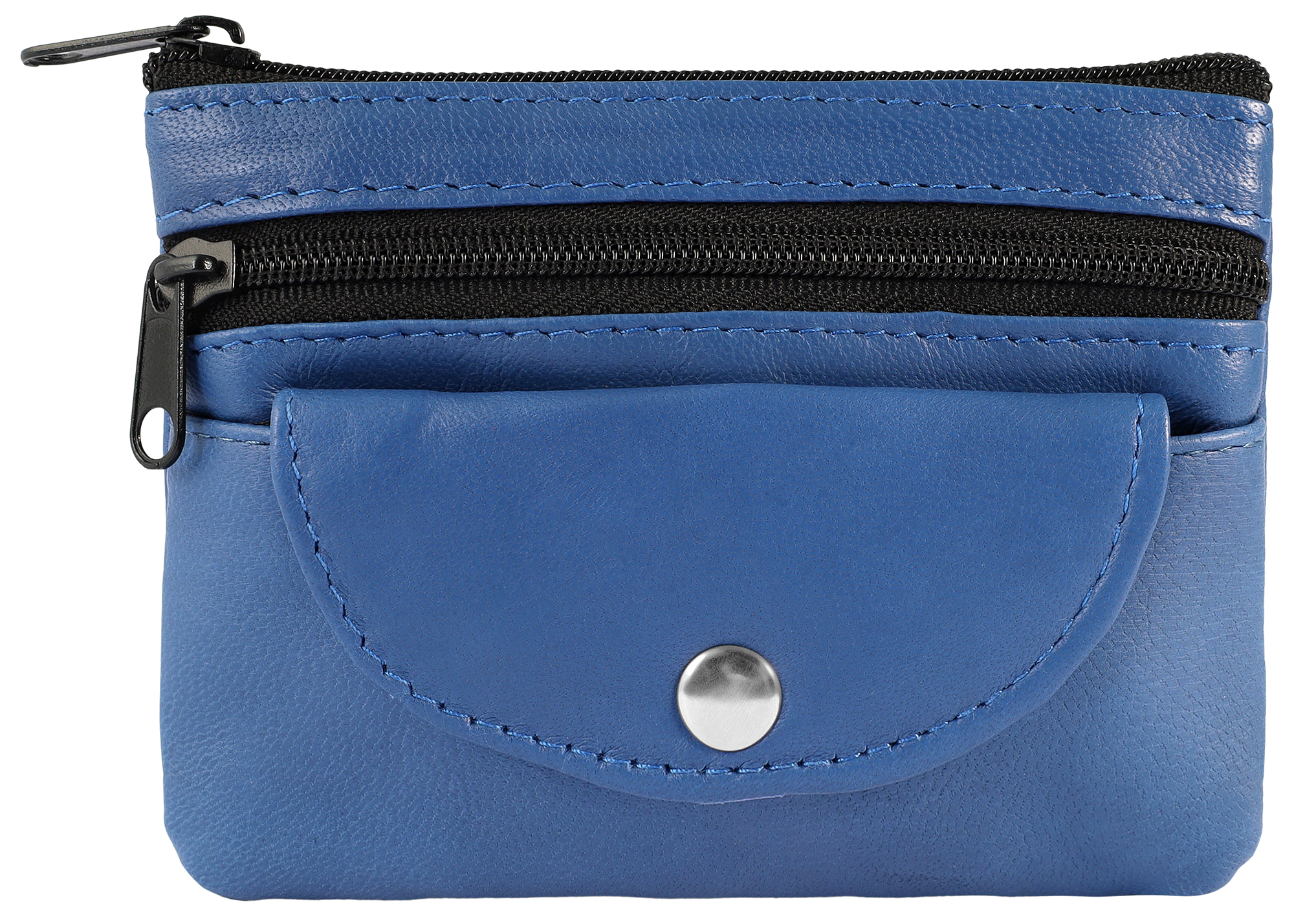 • No exterior, encontrará outro compartimento com fecho, ideal para pequenos trocos ou fichas de estacionamento. Além disso, um terceiro compartimento, que é fechado com um botão de pressão, oferece mais espaço de armazenamento seguro para moedas ou similares.