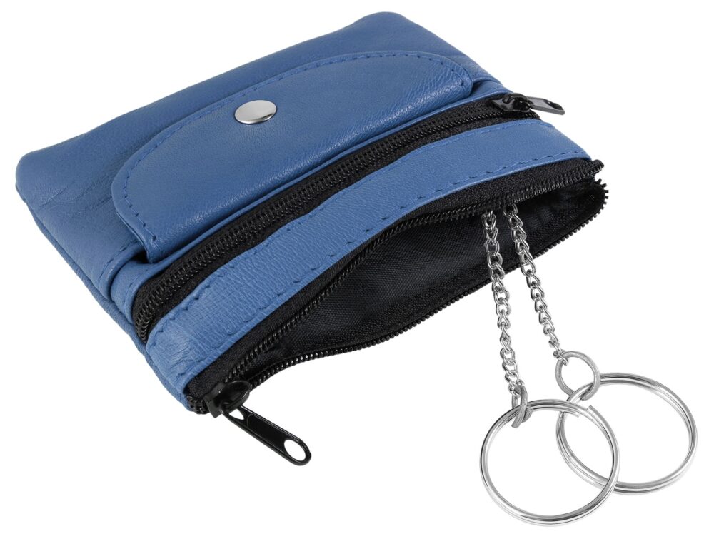 • Com as suas dimensões práticas de aprox. 8,5 x 11,5 x 1,5 cm, o grande compartimento principal pode ser fechado de forma segura com um fecho de correr. No interior, existem dois práticos anéis numa corrente para prender com segurança as chaves de casa, do carro ou do escritório.
