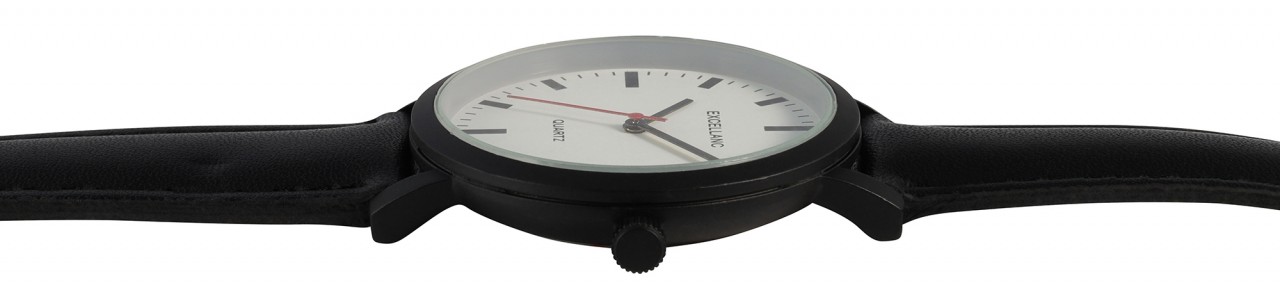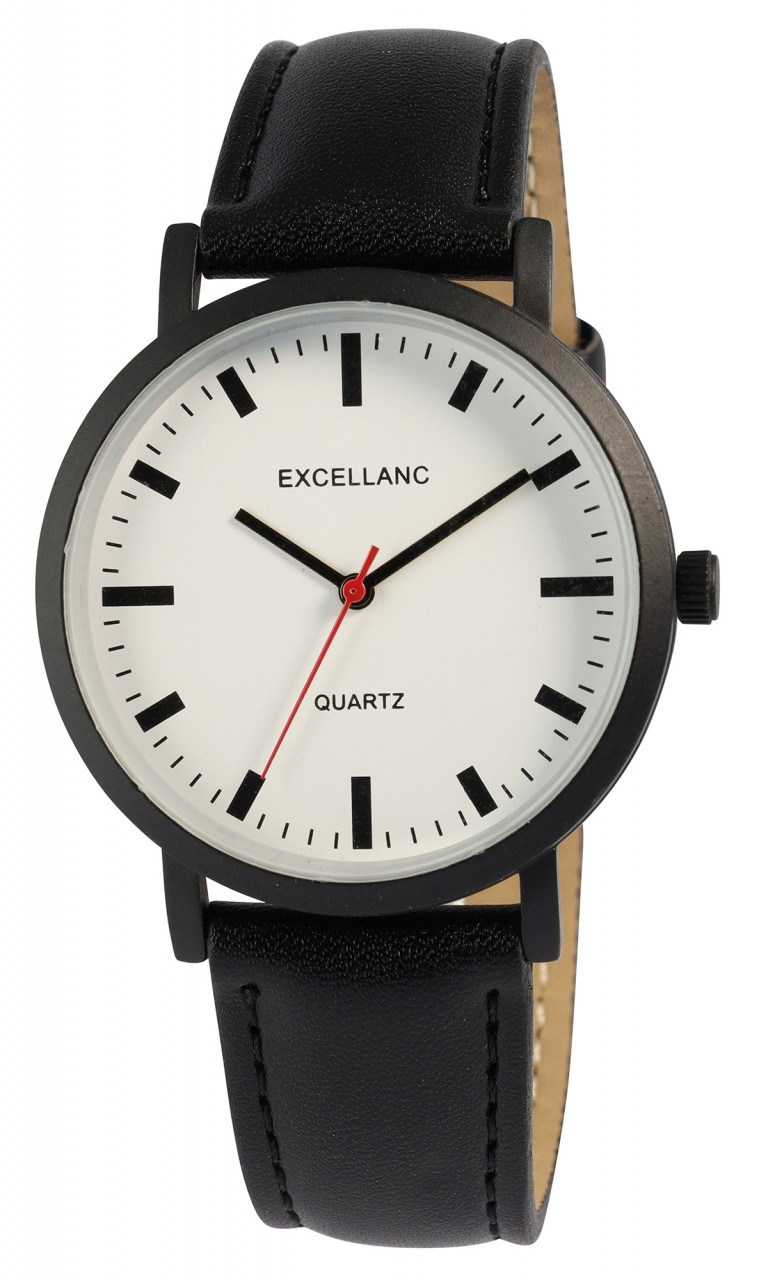Este relógio de pulso Excellanc para homem tem uma bracelete em imitação de pele, ligeiramente forrada, com uma espessura de 4 mm e uma largura de ponte de 20 mm. O relógio é preso com uma fivela de pino. O comprimento total da bracelete e do relógio é de 24 cm. O relógio possui um movimento de quartzo de alta qualidade, um índice de barras moderno com uma cobertura de vidro mineral e o aspeto típico de três ponteiros deste tipo de relógio. O diâmetro do relógio redondo é de 40 mm. Esta peça de joalharia simples é adequada para negócios e lazer.