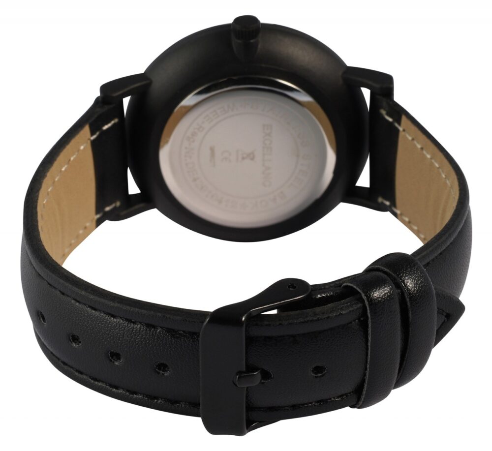 Este relógio de pulso Excellanc para homem tem uma bracelete em imitação de pele, ligeiramente forrada, com uma espessura de 4 mm e uma largura de ponte de 20 mm. O relógio é preso com uma fivela de pino. O comprimento total da bracelete e do relógio é de 24 cm. O relógio possui um movimento de quartzo de alta qualidade, um índice de barras moderno com uma cobertura de vidro mineral e o aspeto típico de três ponteiros deste tipo de relógio. O diâmetro do relógio redondo é de 40 mm. Esta peça de joalharia simples é adequada para negócios e lazer.