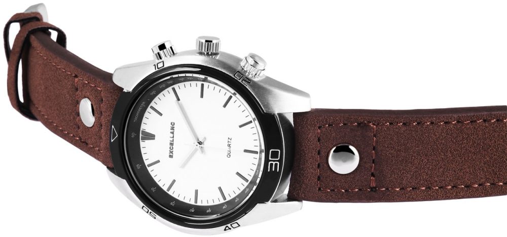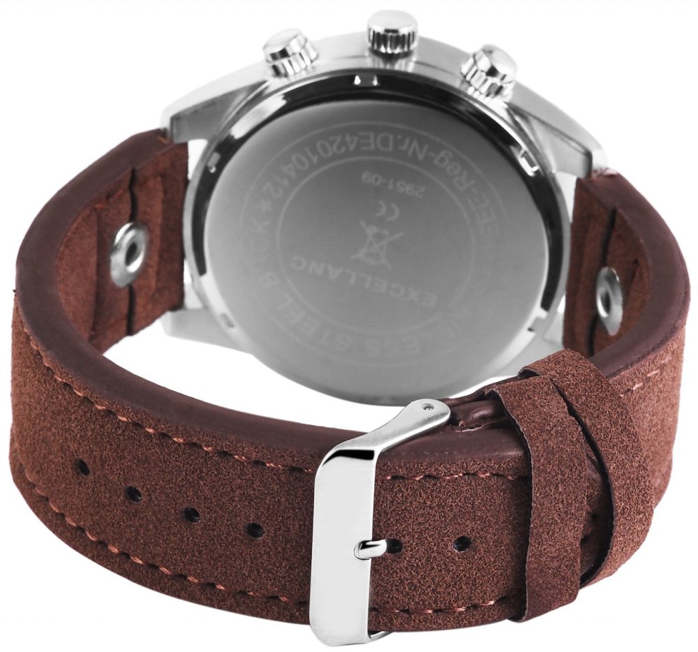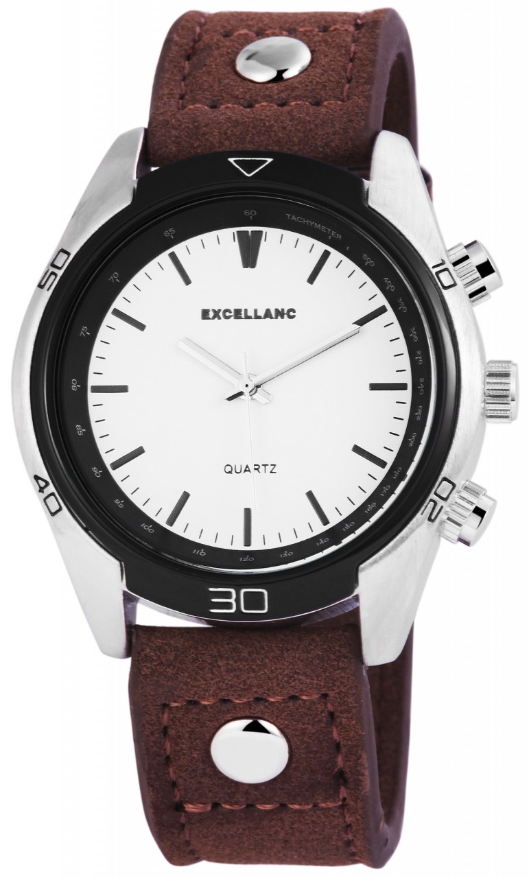 O relógio analógico de 3 ponteiros para homem da marca Excellanc possui um movimento de quartzo de alta qualidade. Com o seu design intemporal, o relógio é um companheiro elegante para qualquer ocasião. O mostrador branco com o índice preto está protegido das influências externas por um vidro mineral. As cores contrastantes tornam o mostrador muito fácil de ler. Isto facilita a leitura das horas. A caixa metálica prateada tem um diâmetro de 45 mm e uma altura de 13 mm. O fundo da caixa é feito de aço inoxidável. O relógio é à prova de salpicos. O relógio de 24 cm de comprimento é preso com uma fivela de pino. A bracelete em Pele Sintética castanha tem uma largura de 23 mm. Este relógio de pulso para homem é também ideal como presente.