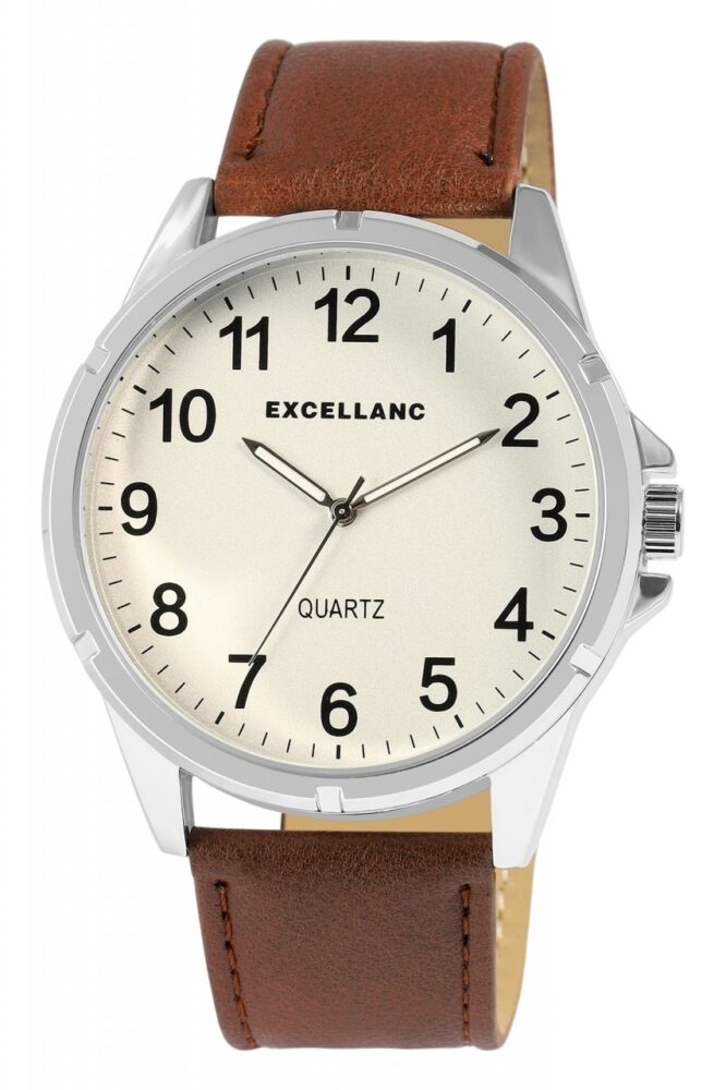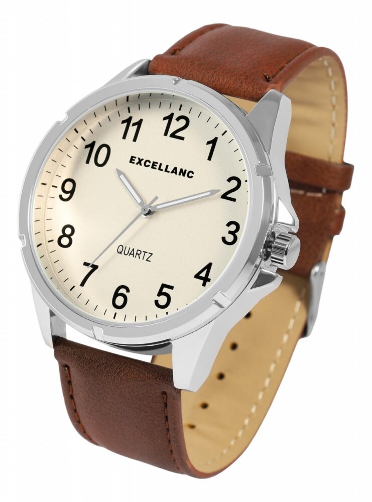 Este relógio masculino da marca Excellanc pode ser usado em qualquer ocasião, seja lazer, negócios ou celebração. O comprimento total do relógio é de 26 cm. A caixa de metal com fundo em aço inoxidável tem um diâmetro de 47 mm. A pulseira feita de pele sintética de alta qualidade com largura de 24 mm no batente é confortável de usar. A prática fivela de pino garante fácil manuseio e uma fixação segura. Este relógio com mostrador transparente com índice de linhas e algarismos arábicos está disponível em diferentes combinações de cores, por isso temos o relógio certo para todos.