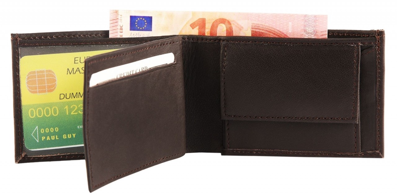 A mini carteira em formato paisagem da Excellanc é confeccionada em couro genuíno. O forro interno também é feito de couro genuíno. Apesar do tamanho, a carteira ainda oferece muito espaço de armazenamento e é uma companheira prática para ele e ela. A carteira possui 1 compartimento para notas, 1 compartimento para moedas com fecho de botão de pressão, 3 compartimentos para cartões de crédito e 2 bolsos deslizantes. O tamanho tem 7,2 cm de comprimento, 10,5 cm de largura e 1,7 cm de espessura. Pequena e compacta, a carteira é a companheira ideal para inúmeras ocasiões e é um excelente presente para pessoas queridas.