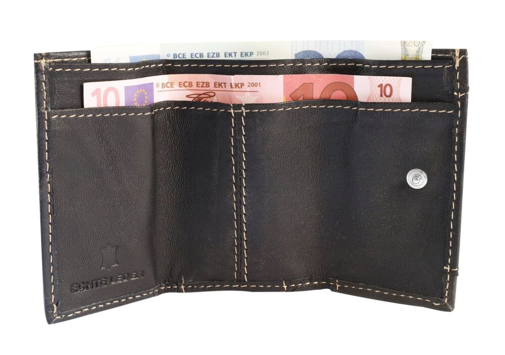 A mini carteira em formato retrato da marca Excellanc é confeccionada em couro genuíno. O forro interno também é feito de couro genuíno. Apesar do tamanho, a carteira ainda oferece muito espaço de armazenamento e é uma companheira prática para ele e ela. A carteira possui 2 compartimentos para notas, 1 compartimento para moedas com fecho de botão de pressão e 1 prático compartimento para chaves. Neste porta-chaves encontra-se um porta-chaves com um diâmetro de 25 mm numa pulseira de couro com aproximadamente 7 cm de comprimento. Isso é ideal para anexar chaves que podem ser convenientemente armazenadas. O tamanho tem 9,1 cm de comprimento, 6 cm de largura e 2,6 cm de espessura. Pequena e…