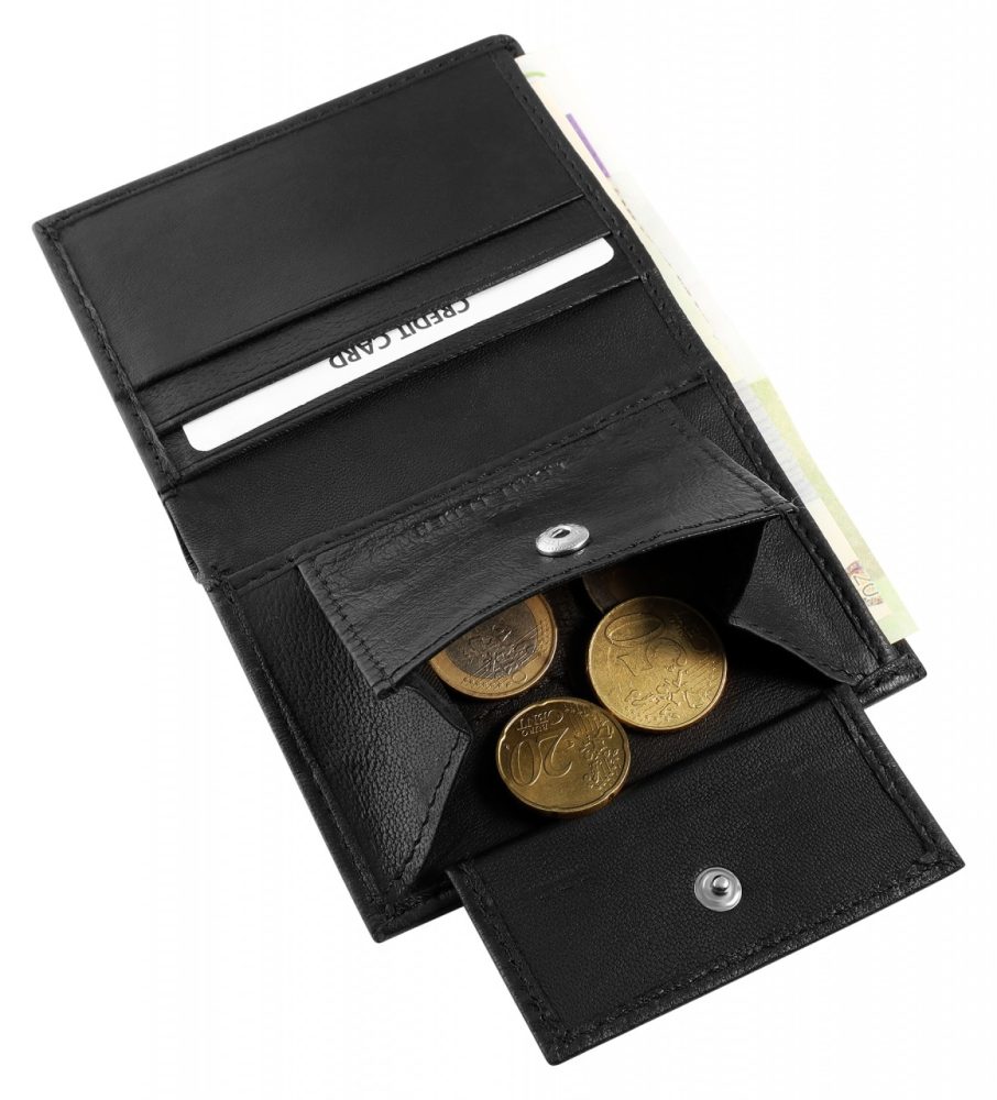 A mini carteira em formato retrato da marca Excellanc é confeccionada em couro genuíno. Apesar do tamanho, a carteira ainda oferece muito espaço de armazenamento e é uma companheira prática para ele e ela. A carteira possui 1 compartimento para notas, 1 compartimento para moedas com fecho de botão de pressão, 2 compartimentos para cartões de crédito e 3 bolsos deslizantes. O tamanho tem 10,4 cm de comprimento, 7,8 cm de largura e 1,7 cm de espessura. Pequena e compacta, a carteira é a companheira ideal para inúmeras ocasiões e é um excelente presente para pessoas queridas.