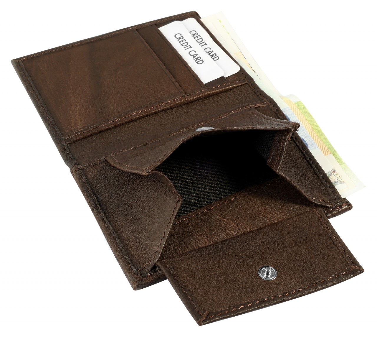 A mini carteira da marca Steinmeister foi confeccionada em formato retrato em couro genuíno. Apesar do tamanho, a carteira ainda oferece muito espaço de armazenamento e é uma companheira prática para ele e ela. A carteira possui 1 compartimento para notas, 1 compartimento para moedas com fecho de botão de pressão, 3 compartimentos para cartões de crédito, 1 compartimento transparente para cartões e 2 bolsos deslizantes. O tamanho tem 10,3 cm de comprimento, 7,5 cm de largura e 2 cm de espessura. Pequena e compacta, a carteira é a companheira ideal para inúmeras ocasiões e é um excelente presente para pessoas queridas.