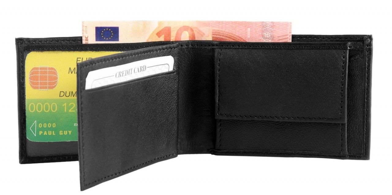 A mini carteira Excellanc em formato paisagem é fabricada em pele genuína. O forro interior também é feito de pele genuína. Apesar do seu tamanho, a carteira oferece ainda muito espaço de arrumação e é um companheiro prático para ele e para ela. A carteira tem 1 compartimento para notas, 1 compartimento para moedas com fecho de pressão, 3 ranhuras para cartões de crédito e 2 bolsos para notas. O tamanho resulta de um comprimento de 7,2 cm, uma largura de 10,5 cm e uma espessura de 1,7 cm. Pequena e compacta, a carteira é a companheira ideal para numerosas ocasiões e constitui um excelente presente para os entes queridos.