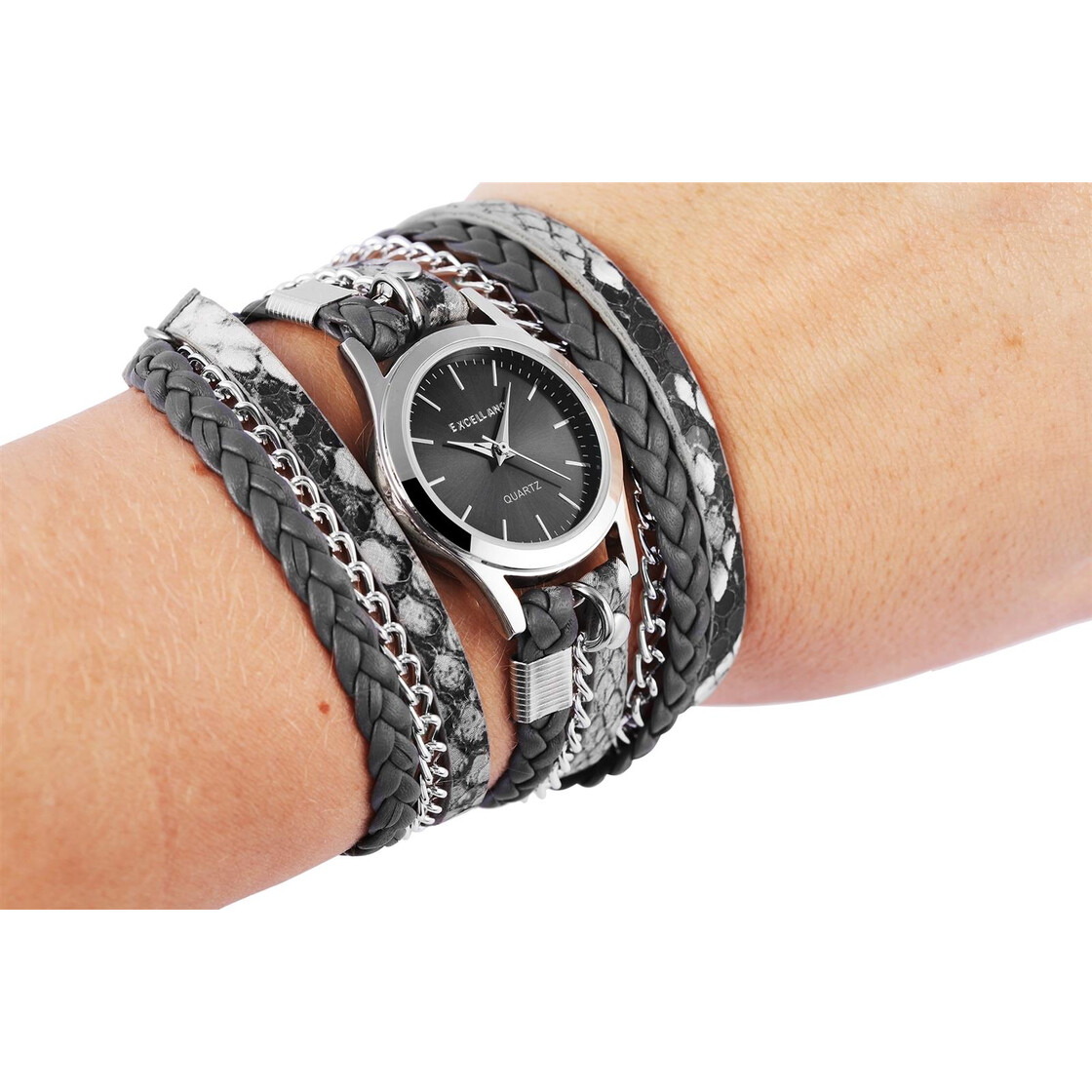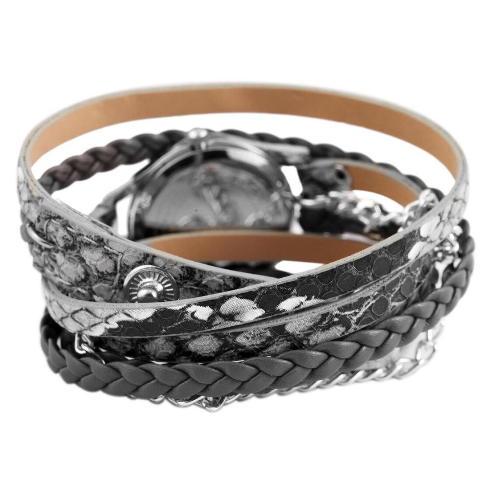 A pulseira de relógio extra longa pode ser enrolada no pulso duas vezes e torna o relógio um atrativo muito especial.