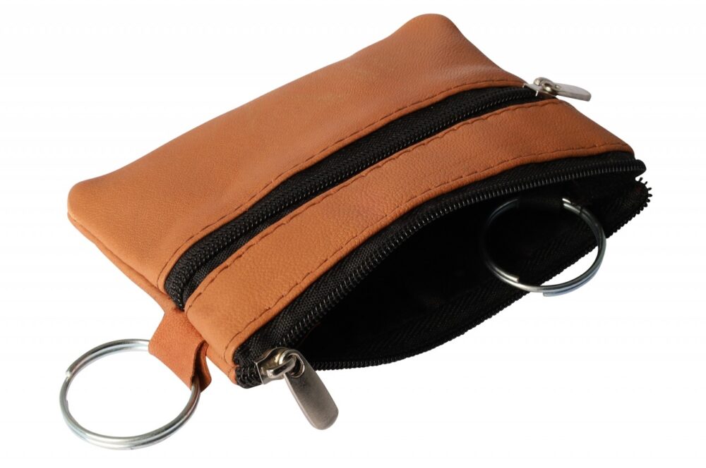A bolsa para chaves da marca Excellanc é feita de couro genuíno. O forro interior é feito de poliéster. Dois práticos porta-chaves com um diâmetro de 25 mm estão ligados à bolsa para chaves. Um deles está preso a uma correia de couro com 4 cm de comprimento no interior da bolsa. O outro porta-chaves está preso a um pedaço de pele com 2 cm de comprimento no exterior. São ideais para prender chaves ou pendentes, mas também para prender a malas ou porta-chaves. O porta-chaves tem um grande compartimento interior e dois compartimentos com fecho de correr no exterior. A bolsa tem 7,8 cm de comprimento, 11,4 cm de largura e 1 cm de espessura. A bolsa para chaves é perfeita para guardar chaves. Os trocos e os cartões também podem ser convenientemente guardados. Pequeno mas com um grande impacto, o porta-chaves clássico é um vencedor.