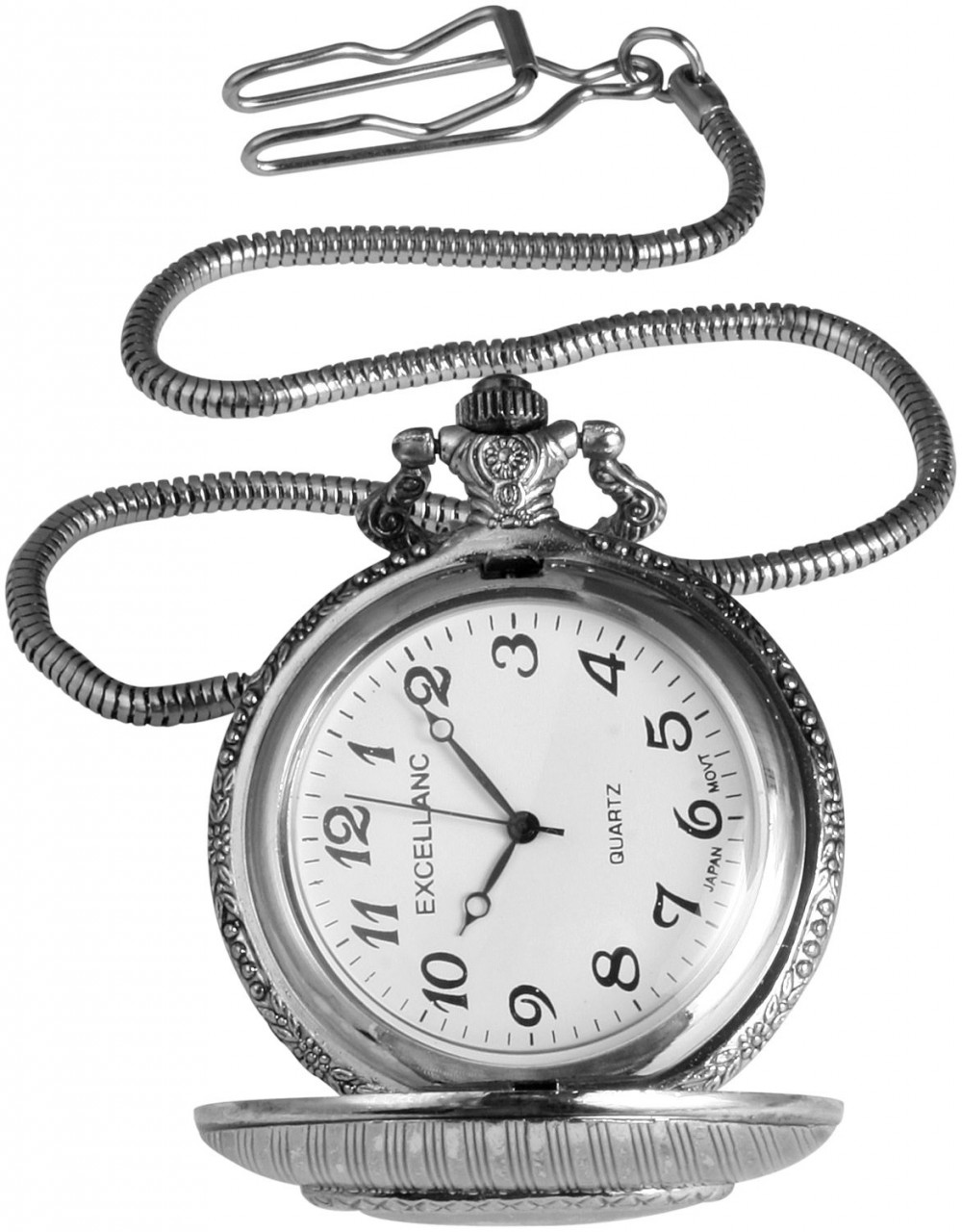 O relógio de bolso analógico de 3 ponteiros da marca Excellanc tem um movimento de quartzo de alta qualidade. A caixa redonda de metal é decorada com um padrão floral na parte traseira. A parte frontal fosca é decorada com um grande emblema oval no meio. O clássico relógio de bolso pode ser aberto com um botão de pressão integrado à coroa. O relógio de bolso vem com uma corrente de relógio de bolso com padrão de cobra de 30 cm de comprimento, o que permite que ele seja preso com segurança a uma bolsa ou peça de roupa. O mostrador do relógio é branco e apresenta grandes algarismos arábicos pretos. Eles realçam o visual clássico do relógio de bolso e tornam a leitura das horas particularmente fácil. O relógio também é equipado com um vidro plástico ligeiramente curvo. As dimensões do relógio são um diâmetro de 47 mm e uma altura de caixa de 16 mm.