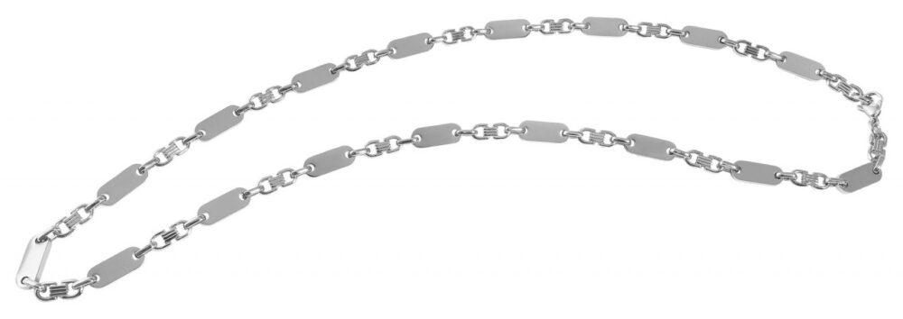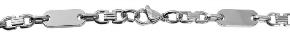 Fadri – uma corrente de placa versátil que é igualmente adequada para homens e mulheres e realça qualquer roupa. A corrente de placa é feita de aço inoxidável e está disponível em três comprimentos: 55 cm, 60 cm e 70 cm. O fecho lagosta proporciona uma fixação segura e torna a corrente fácil de pôr e tirar. As placas de 15 x 6 mm oferecem espaço suficiente para uma gravação personalizada. Não há limites para a sua criatividade. A combinação de placas de gravação e elementos texturados confere ao colar “Fadri” um aspeto impressionante. Use este colar e faça dele a sua peça de joalharia pessoal, juntamente com a pulseira “Elvin” para completar o seu conjunto.