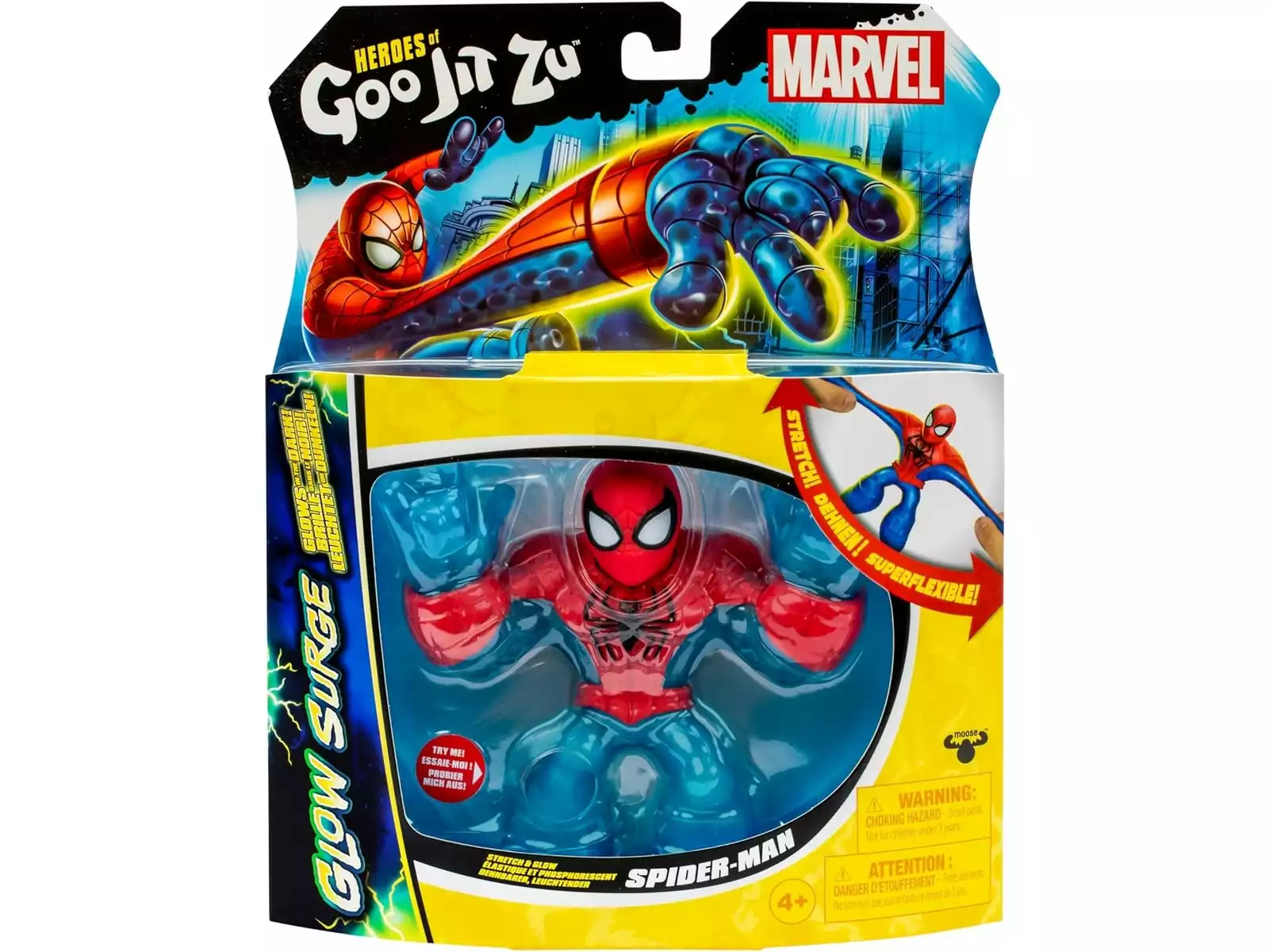 Inclui: 1 figura Spiderman Glow Surge de Heroes Of Goo Jit Zu que brilha no escuro, com corpo elástico, recheio especial, design resistente e mais detalhes geniais