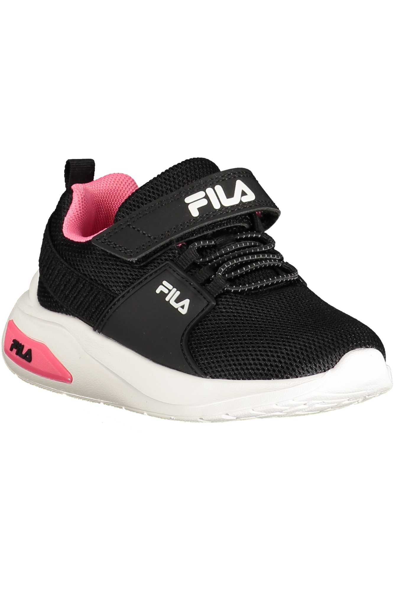 Apresenta fecho com tira aderente (strap) e elásticos, detalhes contrastantes em rosa, palmilha removível, estampa e logótipo, ideal para uso diário e desportivo.