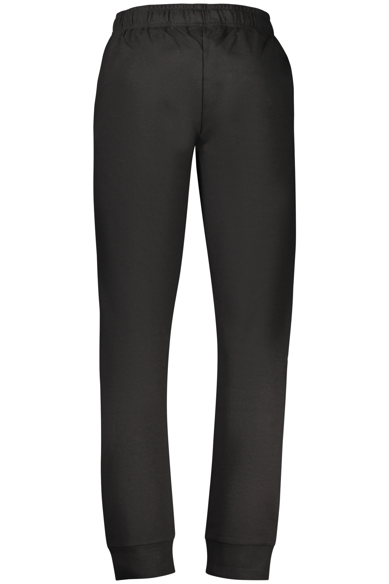 Calças desportivas confortáveis feitas com 70% algodão orgânico e 30% poliéster.