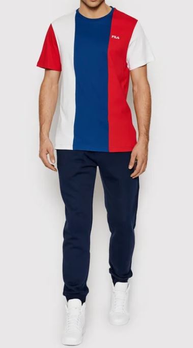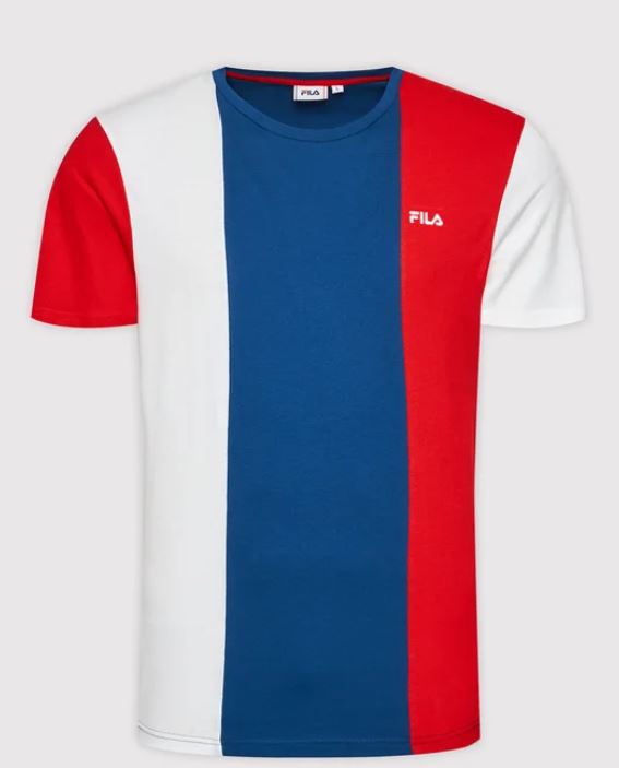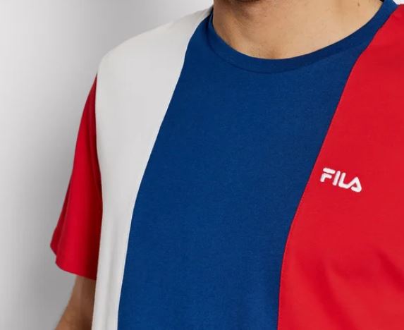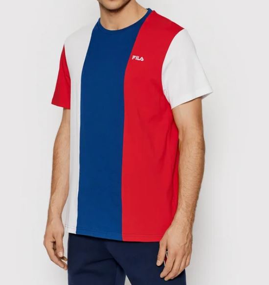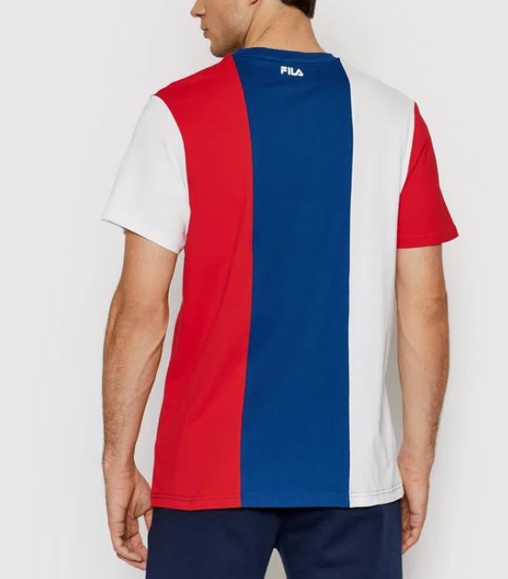 T-shirt tricolor com gola redonda e logótipo.