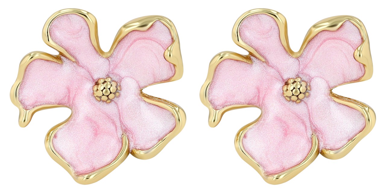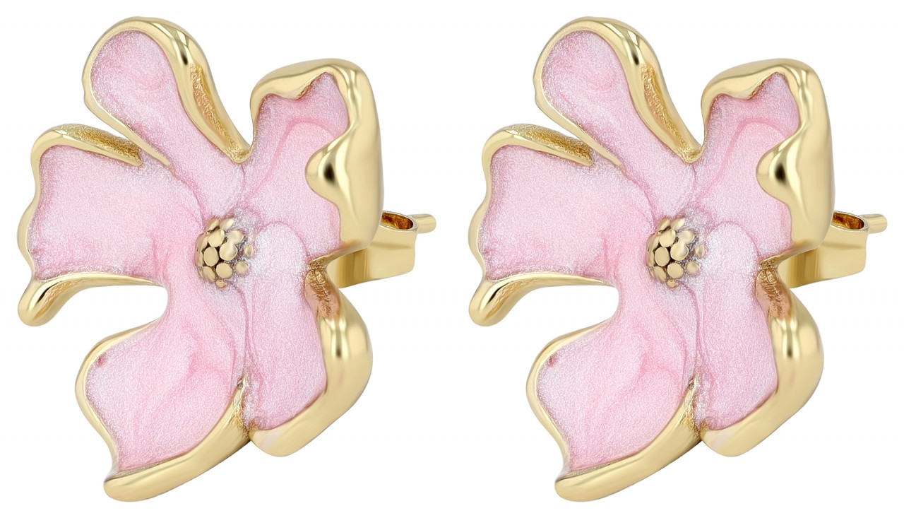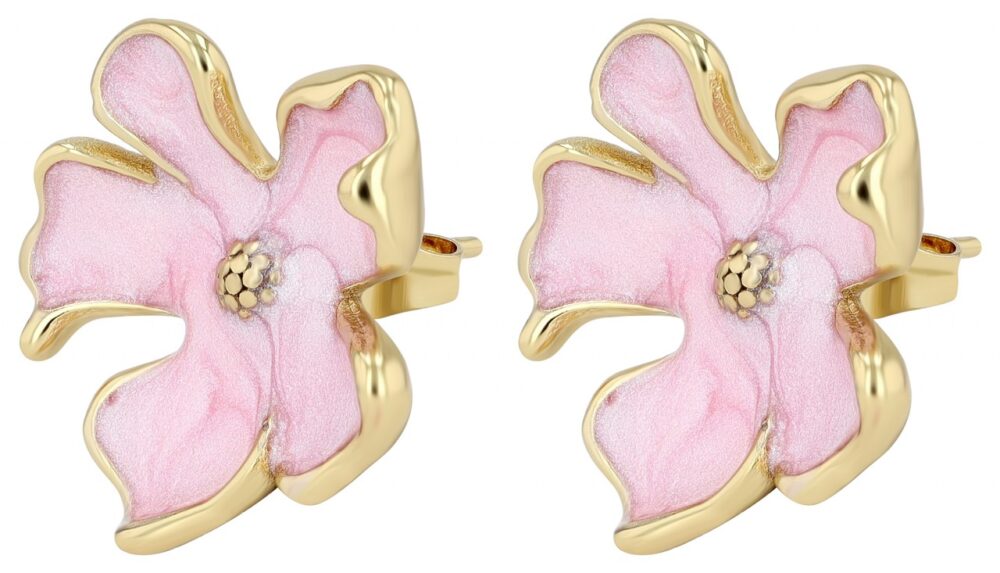Brincos de flor encantadores em um design moderno. Aço inoxidável durável e antialérgico encontra esmalte colorido nesta combinação harmoniosa de componentes. As dimensões dos brincos são A 20 x L 19 x P 4 mm.