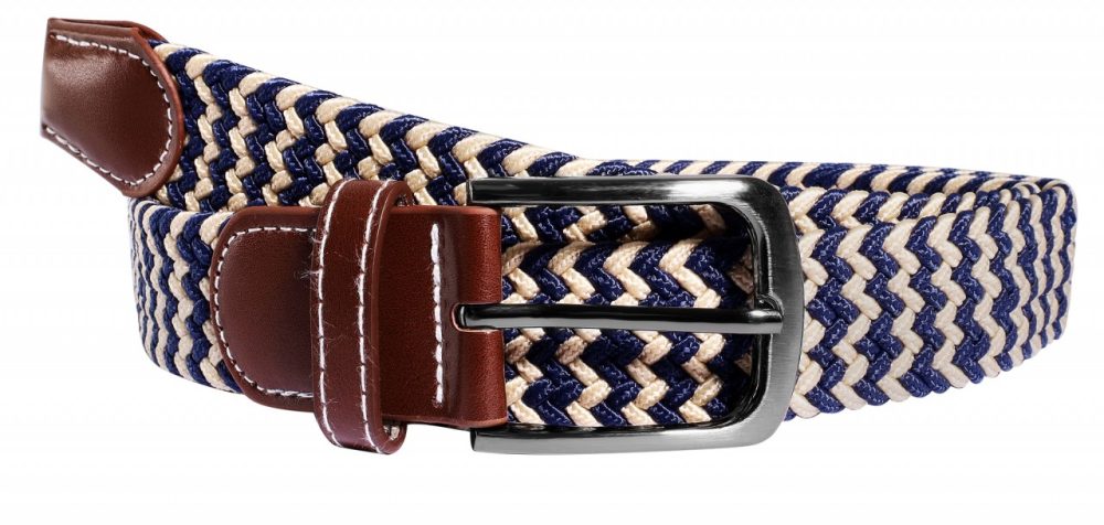 O cinto têxtil nas cores azul e bege com um padrão em ziguezague impressiona pelo seu aspeto desportivo. O cinto entrançado ganha um toque elegante com as aplicações em imitação de pele castanha nas duas extremidades. Feito de material têxtil de alta qualidade, o nosso cinto entrançado é confortável de usar. O cinto tem uma fivela metálica robusta com pinos que pode apertar exatamente onde lhe for mais confortável. Com o nosso cinto entrançado, tem várias opções de comprimento de 100 cm, 110 cm e 120 cm, tem uma largura de 3,2 cm e uma espessura de 0,5 cm, pelo que existe um tamanho adequado para todos. O material torna-o muito robusto, durável e resistente a rasgões. Um excelente cinto de lazer em tecido para um look desportivo.