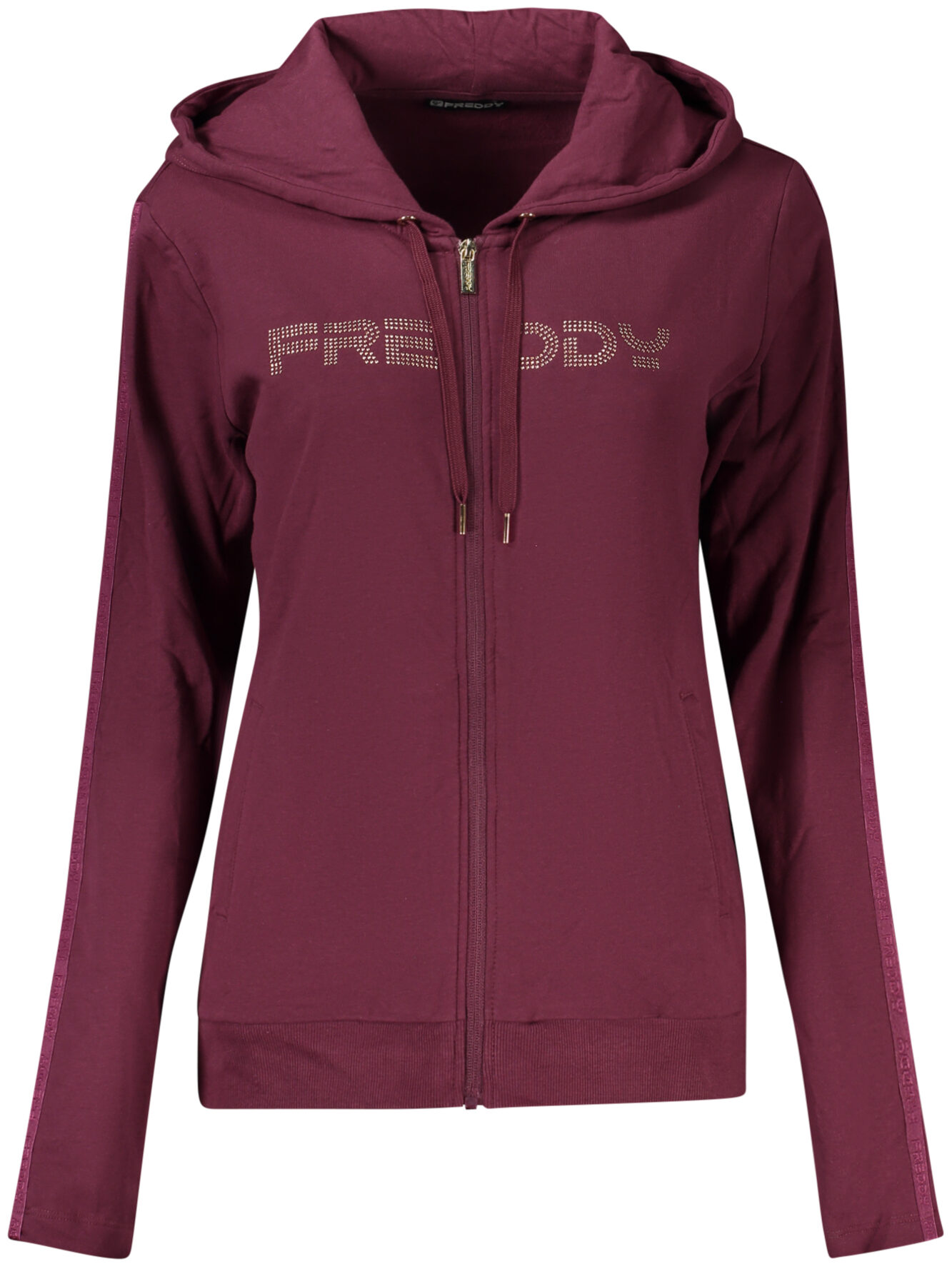 Casaco de manga comprida tipo camisola, com capuz, 2 bolsos e fecho de correr.