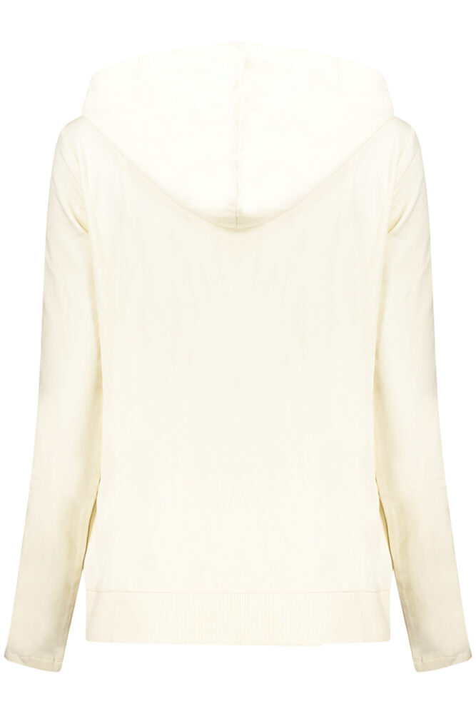 Casaco de manga comprida com capuz, estilo camisola, com 2 bolsos frontais, fecho de correr, aplicação de strass decorativa e logótipo da marca.