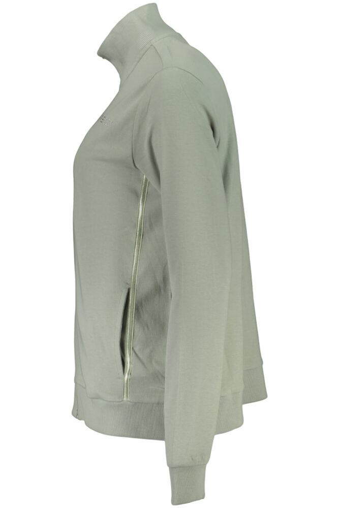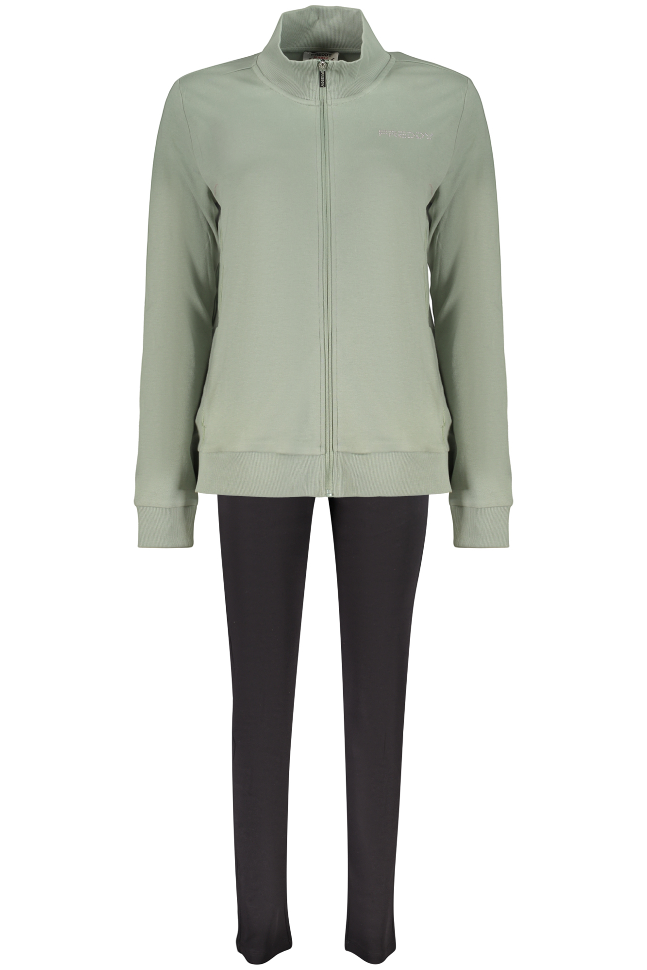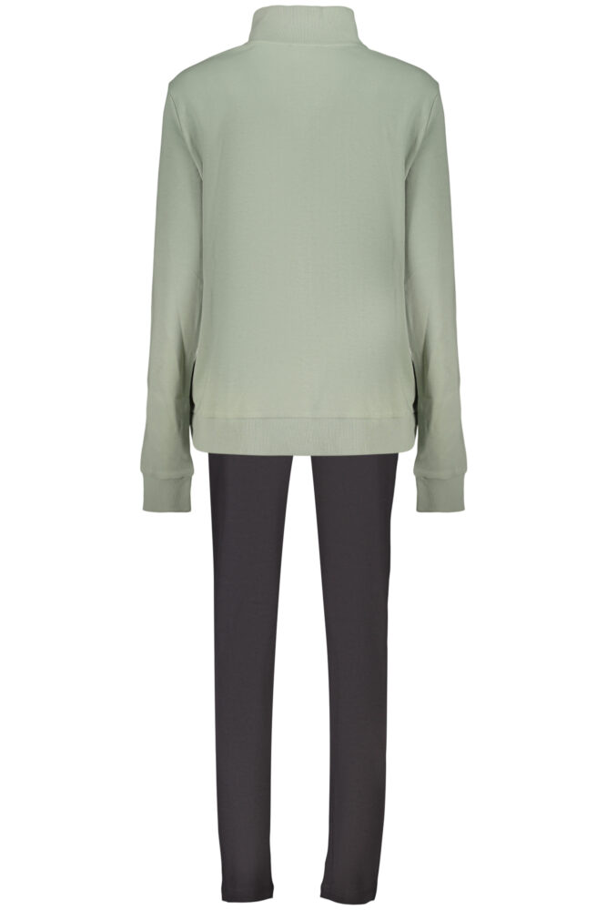 Conjunto camisola e calças com design confortável e moderno. O casaco verde de manga comprida apresenta 2 bolsos, fecho de correr e detalhes em contraste.