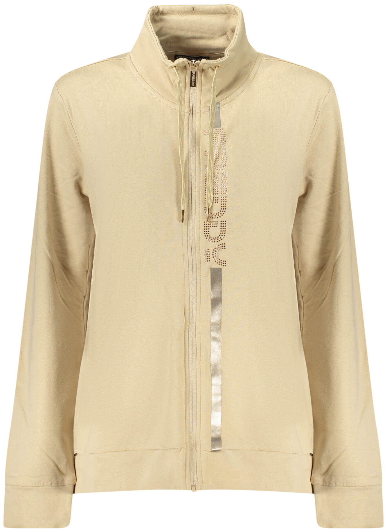 Casaco de manga comprida estilo camisola, com 2 bolsos, fecho de correr, aplicação de strass e logótipo em destaque.