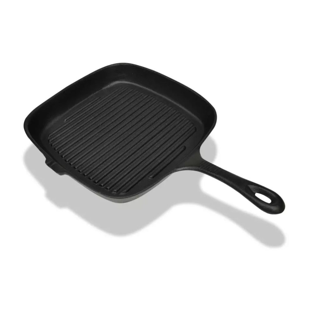 Esta de frigideira apresenta uma superfície com nervuras, o que significa que não precisa de nenhum óleo ou gordura durante o cozimento e torná-la fácil de servir grelhado, pratos dignos de restaurante. Este design também permite que a gordura escoe os alimentos, facilitando a cozedura saudável. A bandeja de ferro fundido tem uma superfície antiaderente e é condutora de calor.