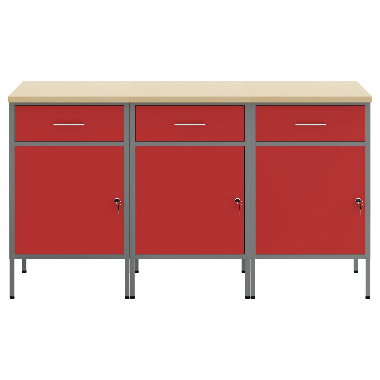 Gabinete de Trabalho 3 pcs Vermelho e Cinza em Madeira Inteligente e Aço - PORTES GRÁTIS