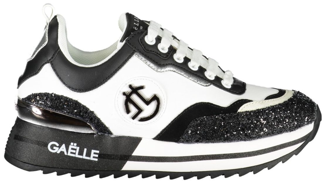 Calçado desportivo com atacadores, detalhes contrastantes, logótipo.