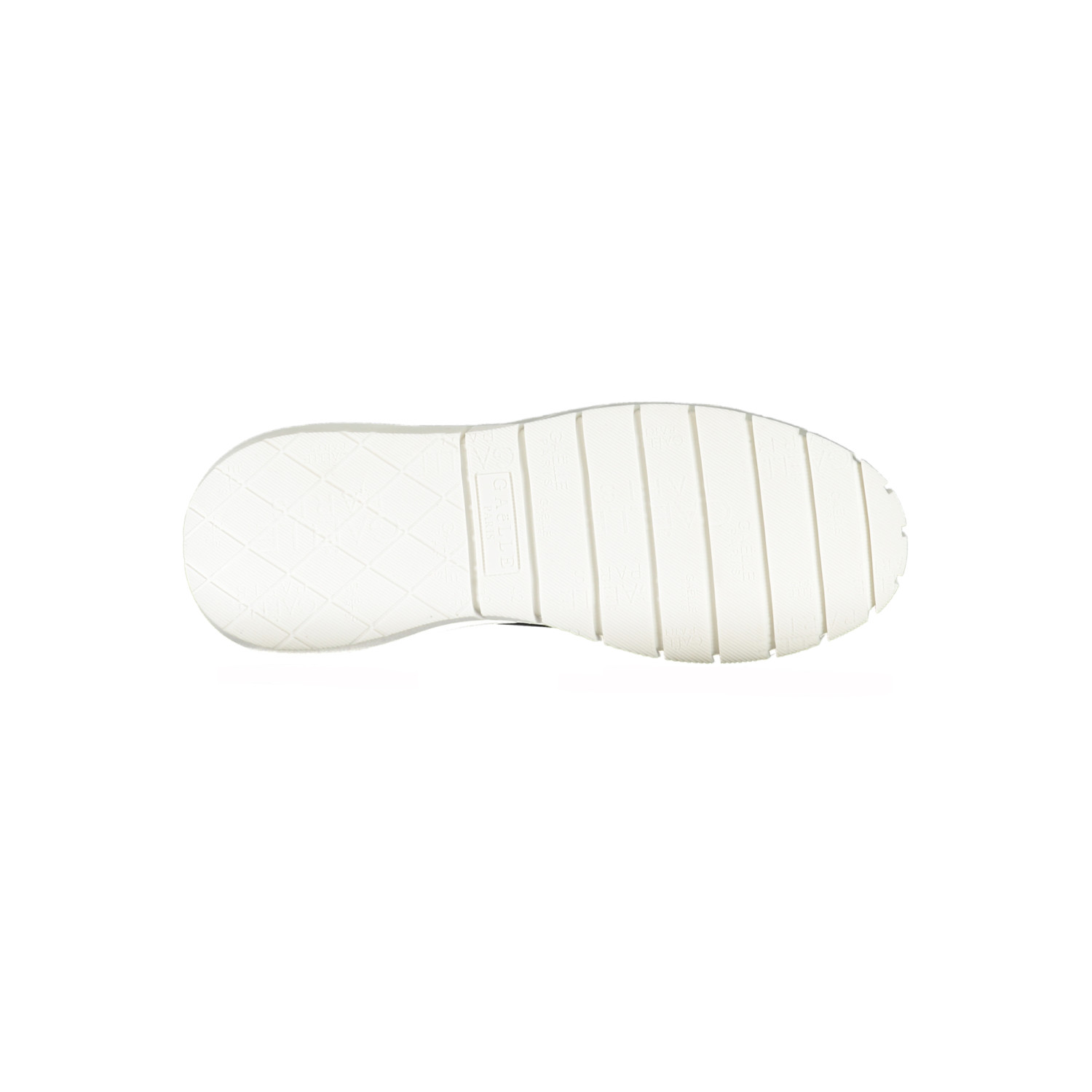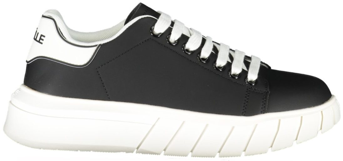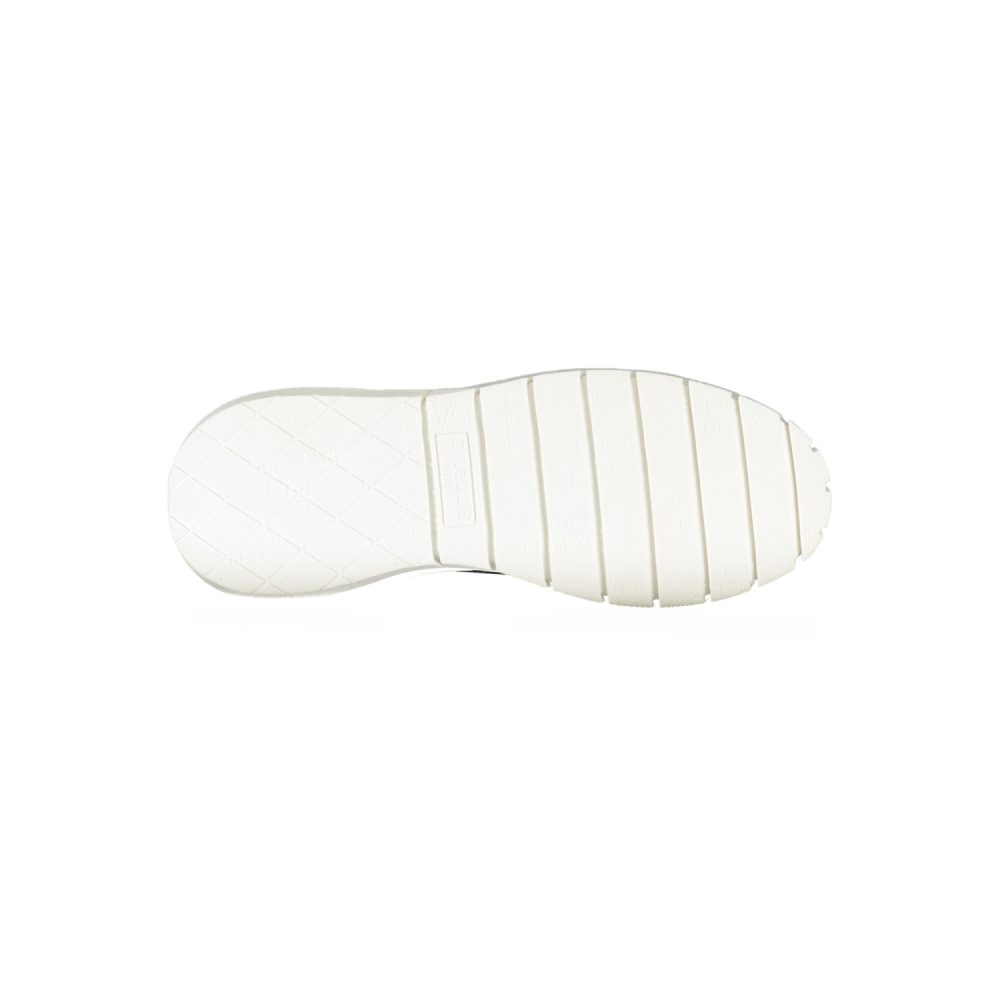 Calçado desportivo com atacadores, detalhes contrastantes, logótipo.