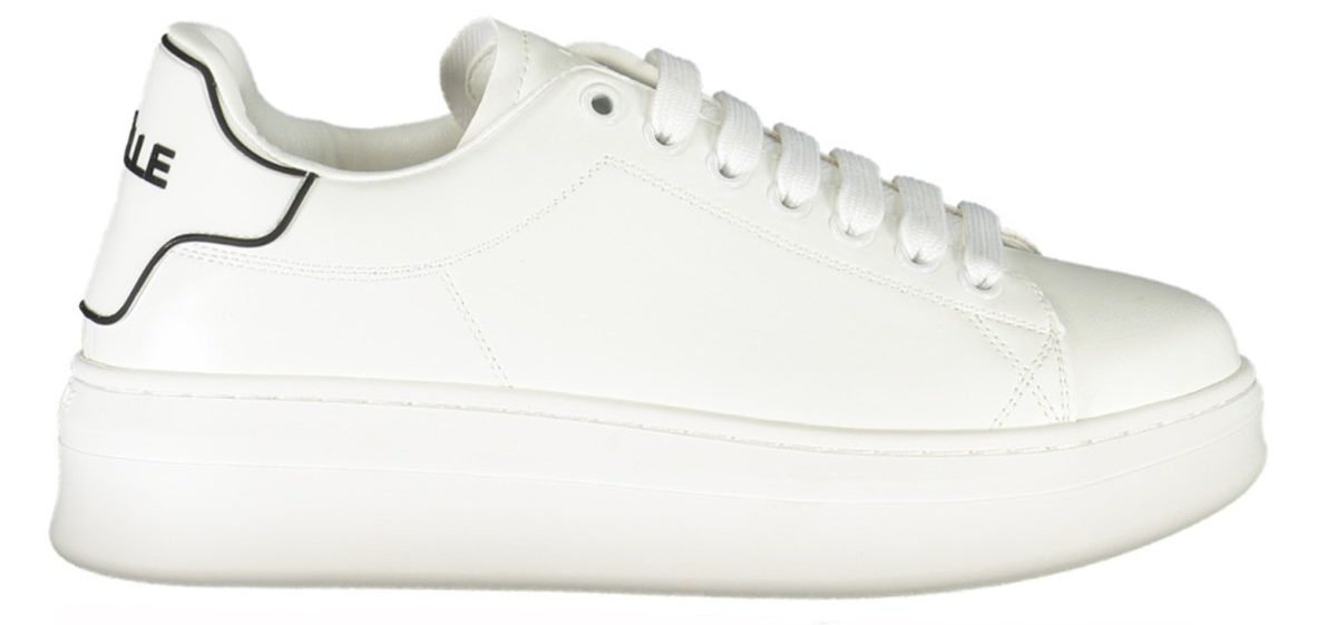 Calçado desportivo com atacadores, detalhes contrastantes, logótipo.