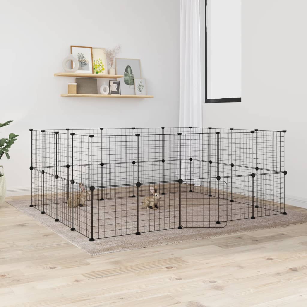 Gaiola p/ animais de 36 painéis c/ porta 35x35 cm aço preto - PORTES GRÁTIS