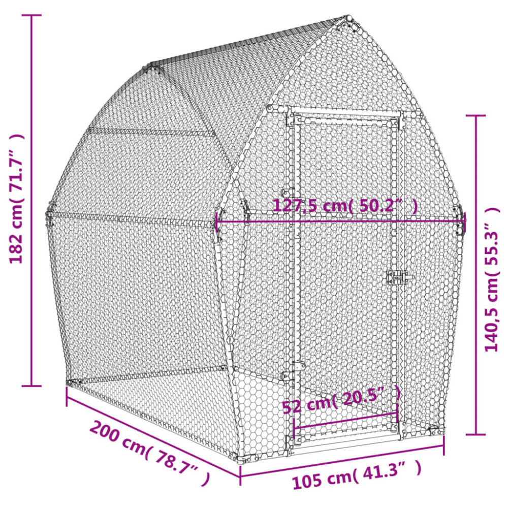 Galinheiro 200x105x182 cm aço galvanizado prateado - PORTES GRÁTIS