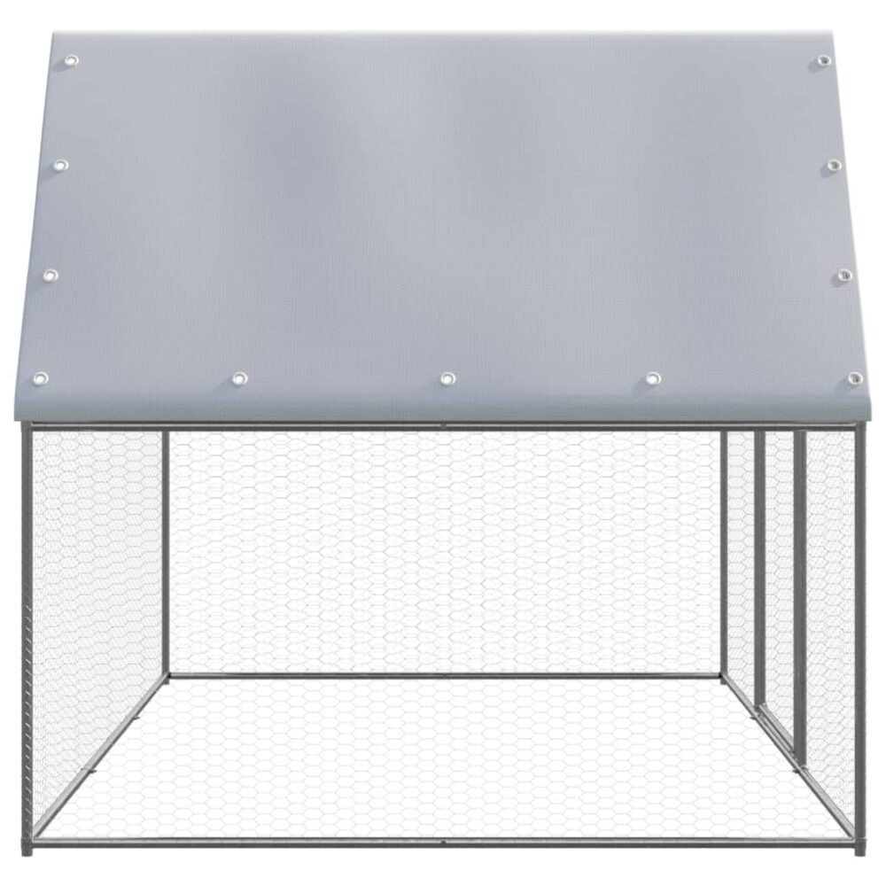 Este galinheiro prático e espaçoso é a escolha perfeita de um recinto de exterior que lhe permitirá manter confortáveis os seus frangos, galinhas, patos e outros animais de pequeno porte. Estrutura durável e robusta: o galinheiro é feito de aço galvanizado. O aço é um material excecionalmente duro e forte. Oferece robustez e estabilidade. A galvanização proporciona uma melhor proteção contra a corrosão e é útil em produtos que serão utilizados ao ar livre, bem como em ambientes hostis.Telhado resistente à água: o galinheiro possui um telhado de polietileno que é resistente à água e aos raios UV, proporcionando proteção contra o sol, a chuva, a neve e outras condições meteorológicas.Divisão para atividades ampla: o galinheiro fornece às suas aves uma ampla divisão para atividades, permitindo-lhes circular com facilidade. Além disso, também é adequado para outros animais pequenos, tais como pássaros, coelhos, patos, gansos, etc.Extra segurança: a porta articulada deste recinto para galinhas, com um sistema de fecho com trinco, garante segurança e proteção adicionais às suas galinhas.