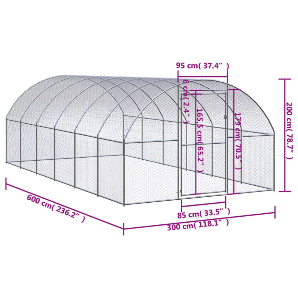 Galinheiro de exterior 3x6x2 m aço galvanizado - PORTES GRÁTIS