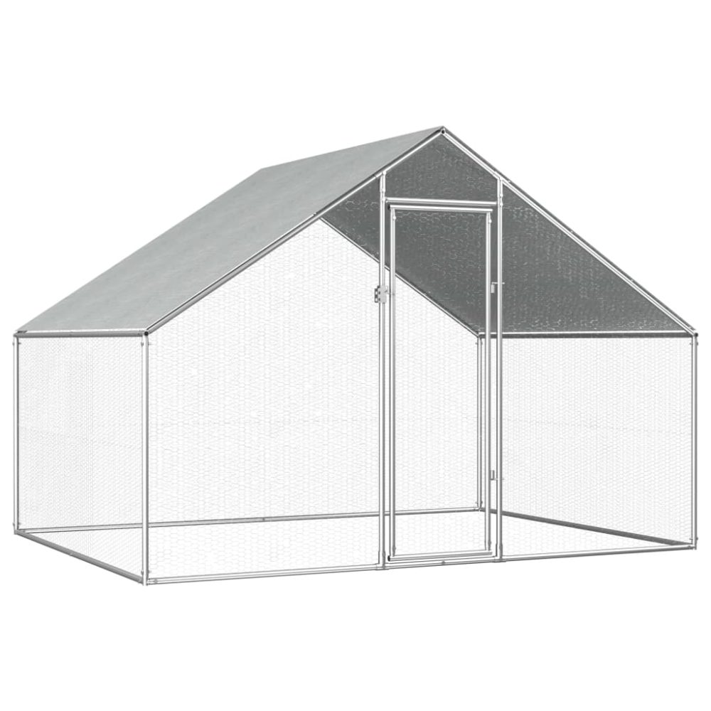 Este galinheiro foi fabricado com aço galvanizado de elevada qualidade, assegurando robustez e durabilidade, e possui um telhado em 100% polietileno, resistente à água e aos raios UV, fornecendo proteção do sol, chuva, neve, entre outras condições climatéricas. As paredes laterais em arame ajudam a prevenir estragos ou acidentes inesperados e permitem a circulação do ar. A porta está equipada com um fecho para oferecer uma segurança extra aos seus animais. O produto é fácil de montar.