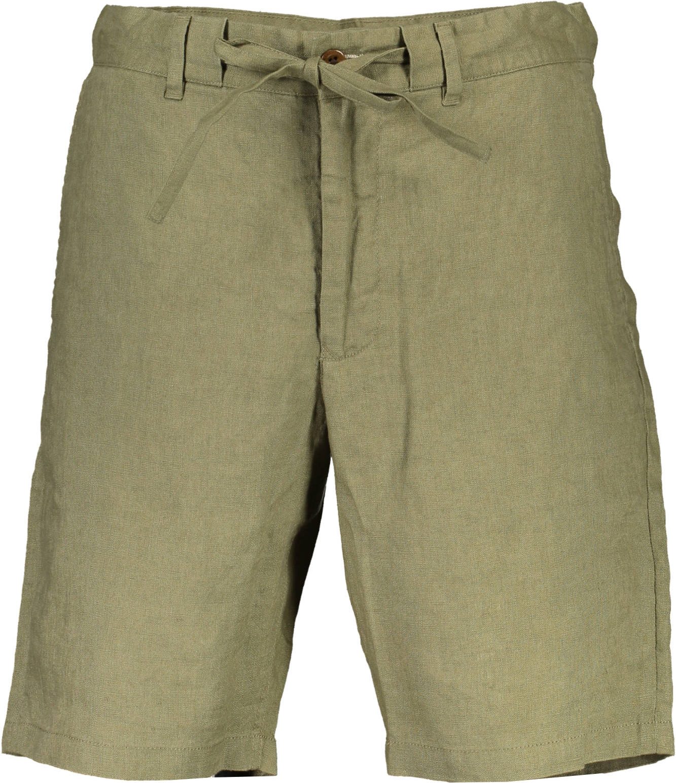 Bermuda de 4 bolsos, botão e zíper, cordão na cintura.