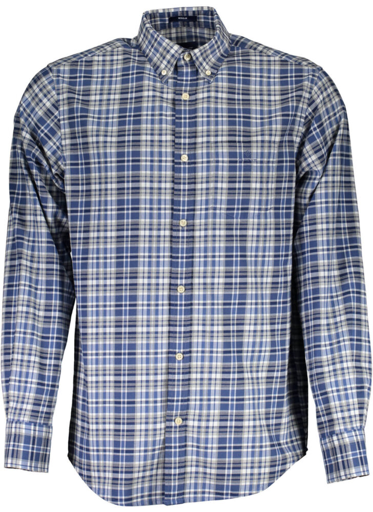 Camisa normal de manga comprida, gola abotoada, bolso único, punhos com 1 botão, botões, logótipo.