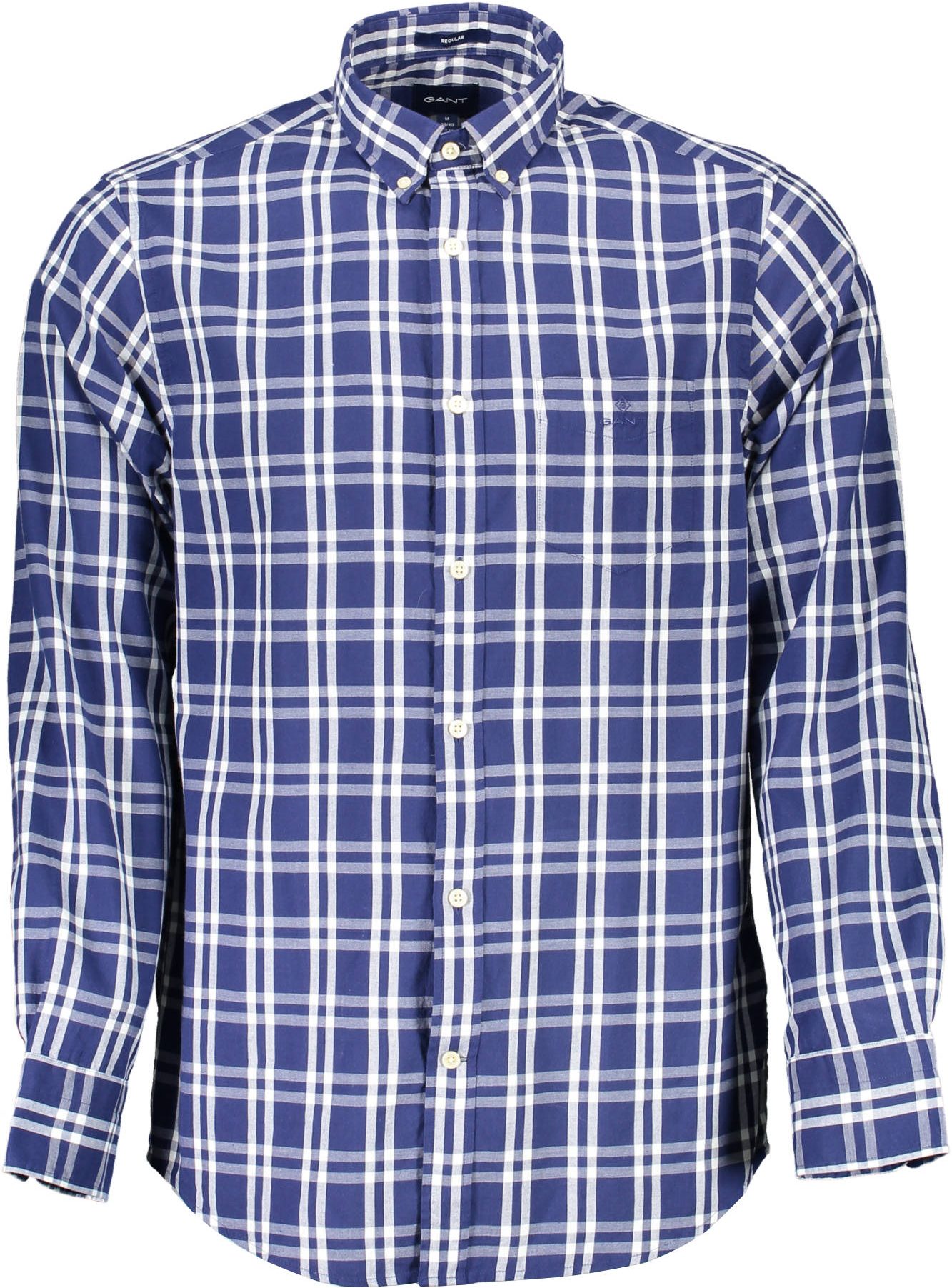 Camisa de manga comprida com padrão xadrez, corte regular, botões, bolso, botões nos punhos e logótipo.
