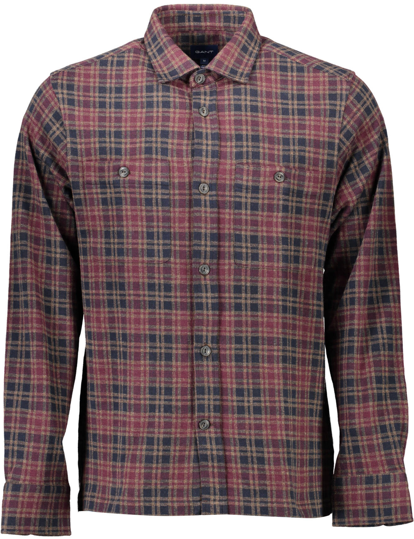 Camisa de manga comprida, gola aberta, 2 bolsos no peito, punhos 1 botão, botões, logótipo