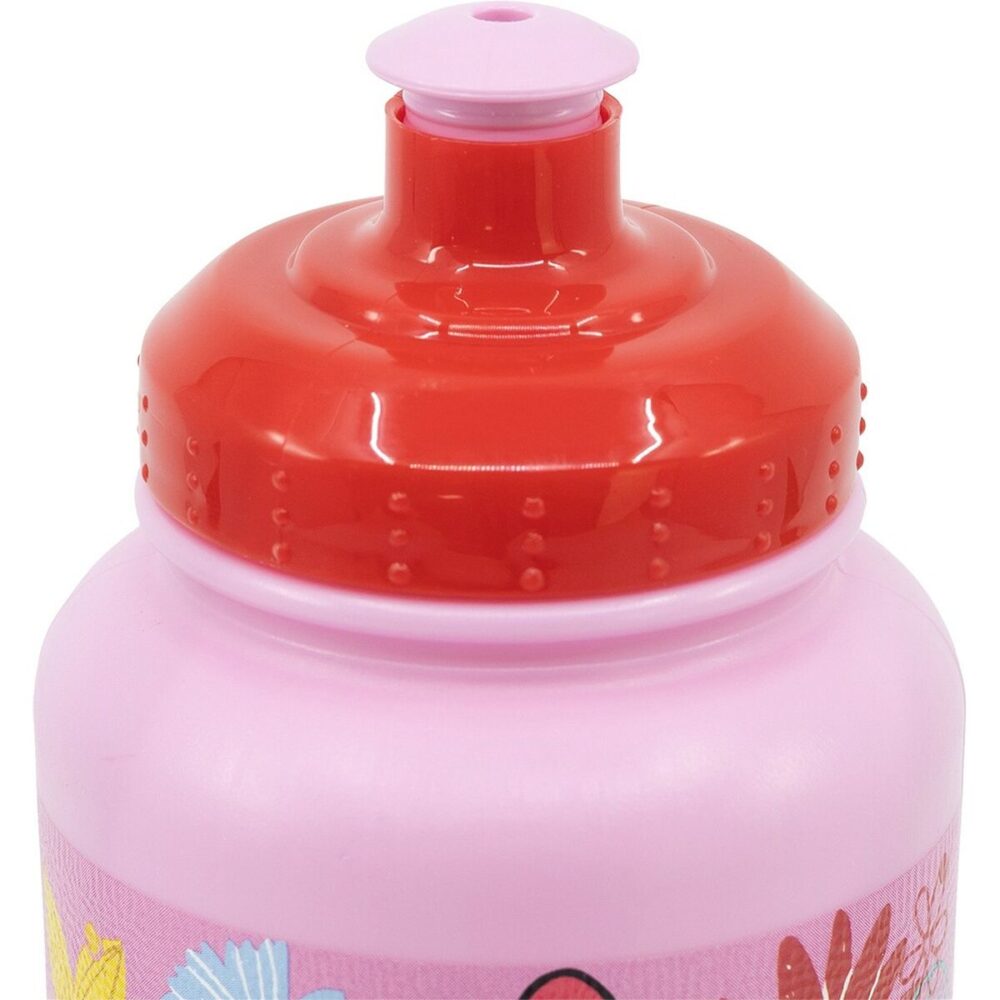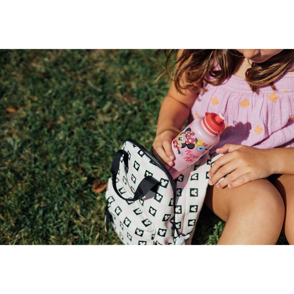 - Este bidão apresenta uma cor rosa atrativa, combinando design e utilidade prática com gráficos oficiais da Minnie Mouse, licença Disney que garante autenticidade e um aspeto amigável para os mais pequenos.