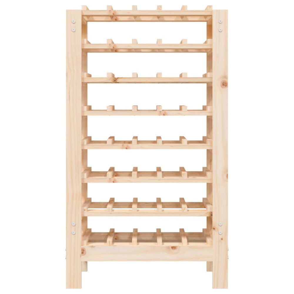 Armazene, envelheça e exponha o seu vinho em estilo com esta garrafeira em madeira! Madeira de pinho maciça: a madeira de pinho maciça é um bonito material natural. A madeira de pinho possui um grão reto e os nós dão ao material o seu aspeto rústico.Amplo espaço de arrumação: o suporte de vinhos proporciona um amplo espaço de arrumação para guardar o seu vinho. É ideal para acomodar até40 garrafas de vinho. Estrutura robusta: a estrutura de madeira assegura robustez e estabilidade. Atenção:Para evitar que o produto se vire, deve utilizar o dispositivo de fixação na parede fornecido. Nota:Cada produto é fornecido com um manual de montagem na caixa para facilitar a montagem.