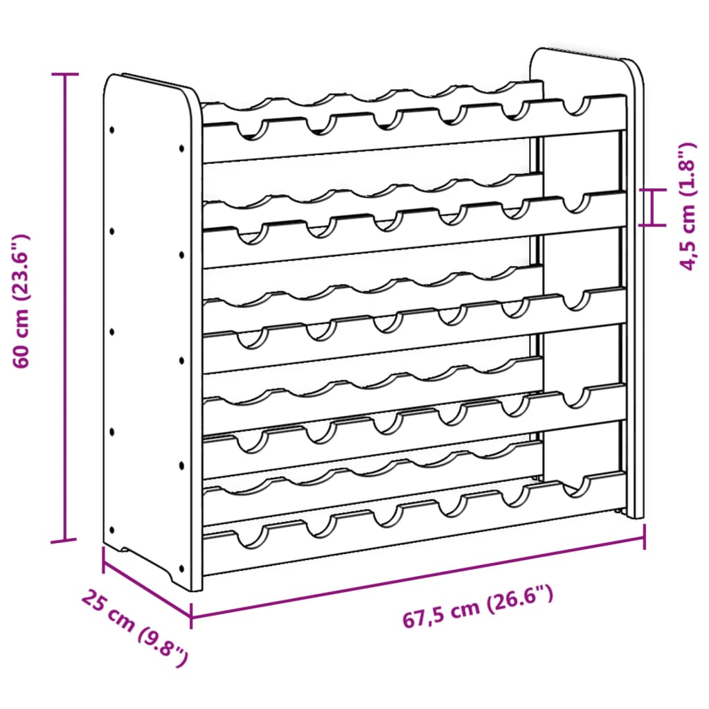 Armazene, envelheça e exponha o seu vinho em estilo com esta garrafeira em madeira! Madeira de pinho maciça: esta garrafeira é feita em madeira de pinho maciça. A madeira de pinho maciça é um bonito material natural. A madeira de pinho possui um grão reto e os nós conferem ao material o seu aspeto rústico.Amplo espaço de arrumação: a garrafeira apresenta 5 prateleiras que comportam até 30 garrafas de vinho. Cada prateleira comporta 6 garrafas.Design de rebordos em onda: o design em onda das bordas permite que a rolha se mantenha húmida, tornando assim o vinho fresco.Amplas aplicações: a garrafeira é adequada para cozinhas, despensas, armários, salas de jantar, caves, bancadas, bares, adegas, etc. Atenção:Para evitar que o produto tombe, deve utilizar o dispositivo de fixação na parede (não fornecido).